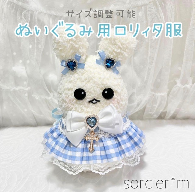 sorcier*m ぬいぐるみ用 ロリィタ服 ぬい服 ぬいぐるみ用 衣装 コスチューム 着せ替え ギンガムチェック 水色