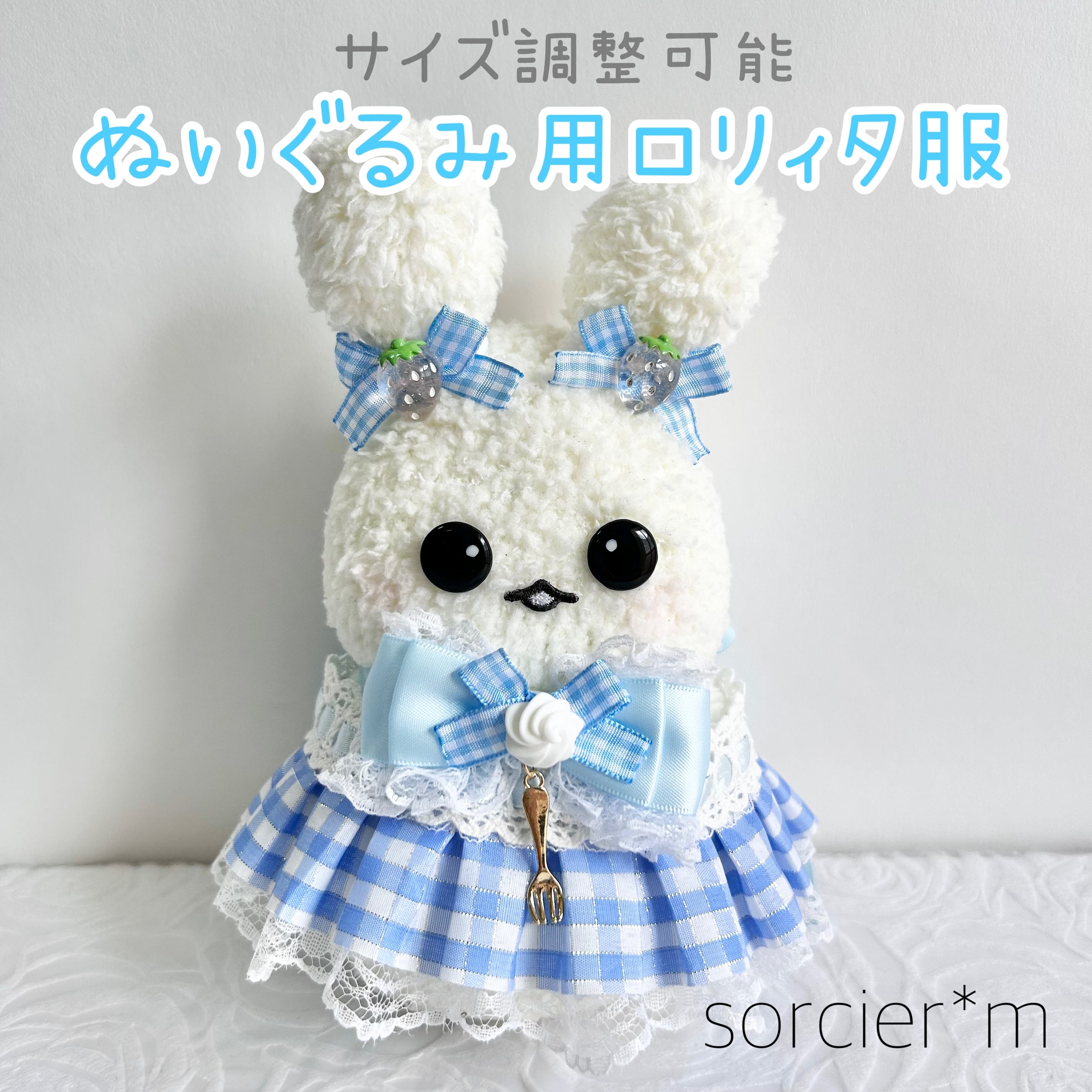 sorcier*m ぬいぐるみ用 ロリィタ服 ぬい服 ぬいぐるみ用 衣装 コスチューム 着せ替え ギンガムチェック 水色