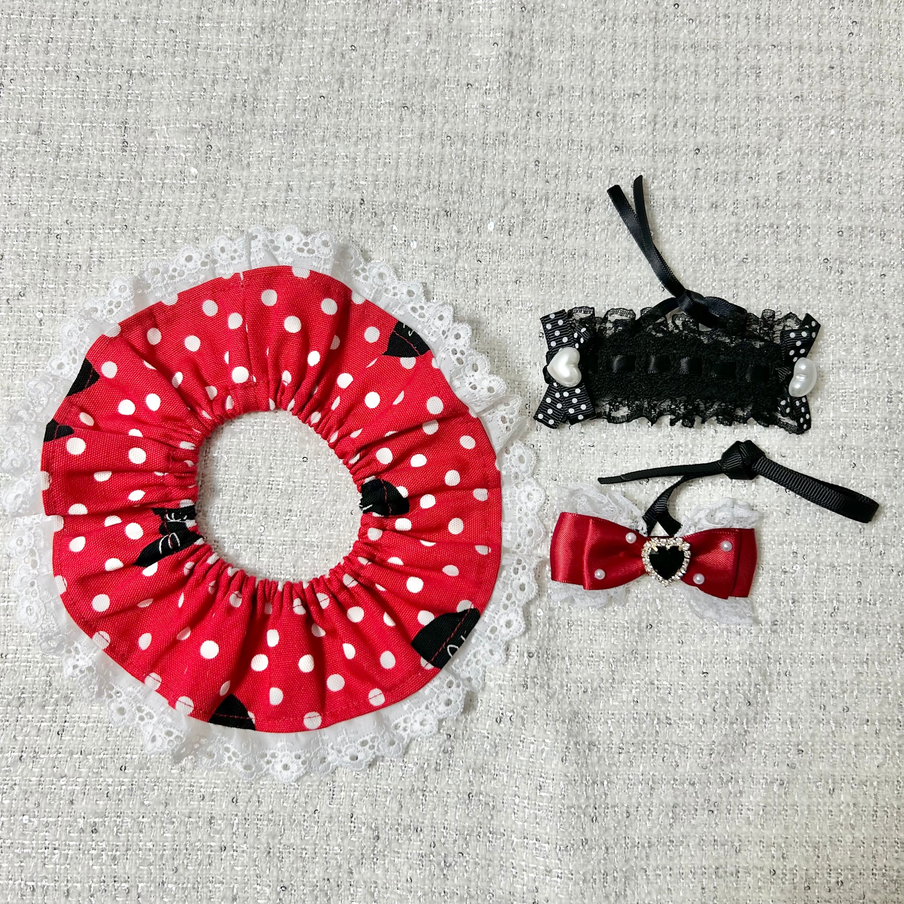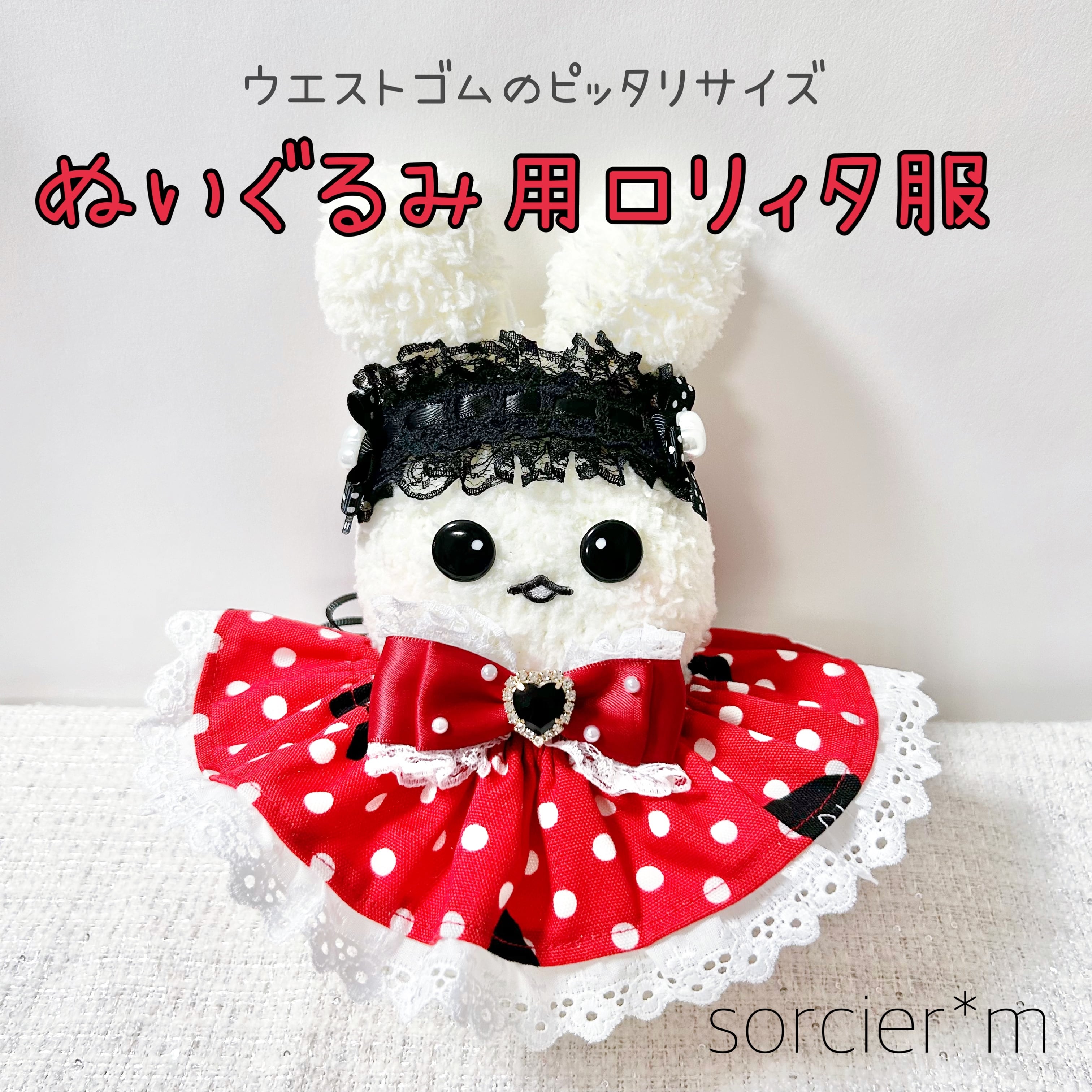 sorcier*m ぬいぐるみ用 ロリィタ服 ぬい服 ぬいぐるみ用 衣装 コスチューム 着せ替え 水玉 赤 ドット ロリィタ ヘッドドレス