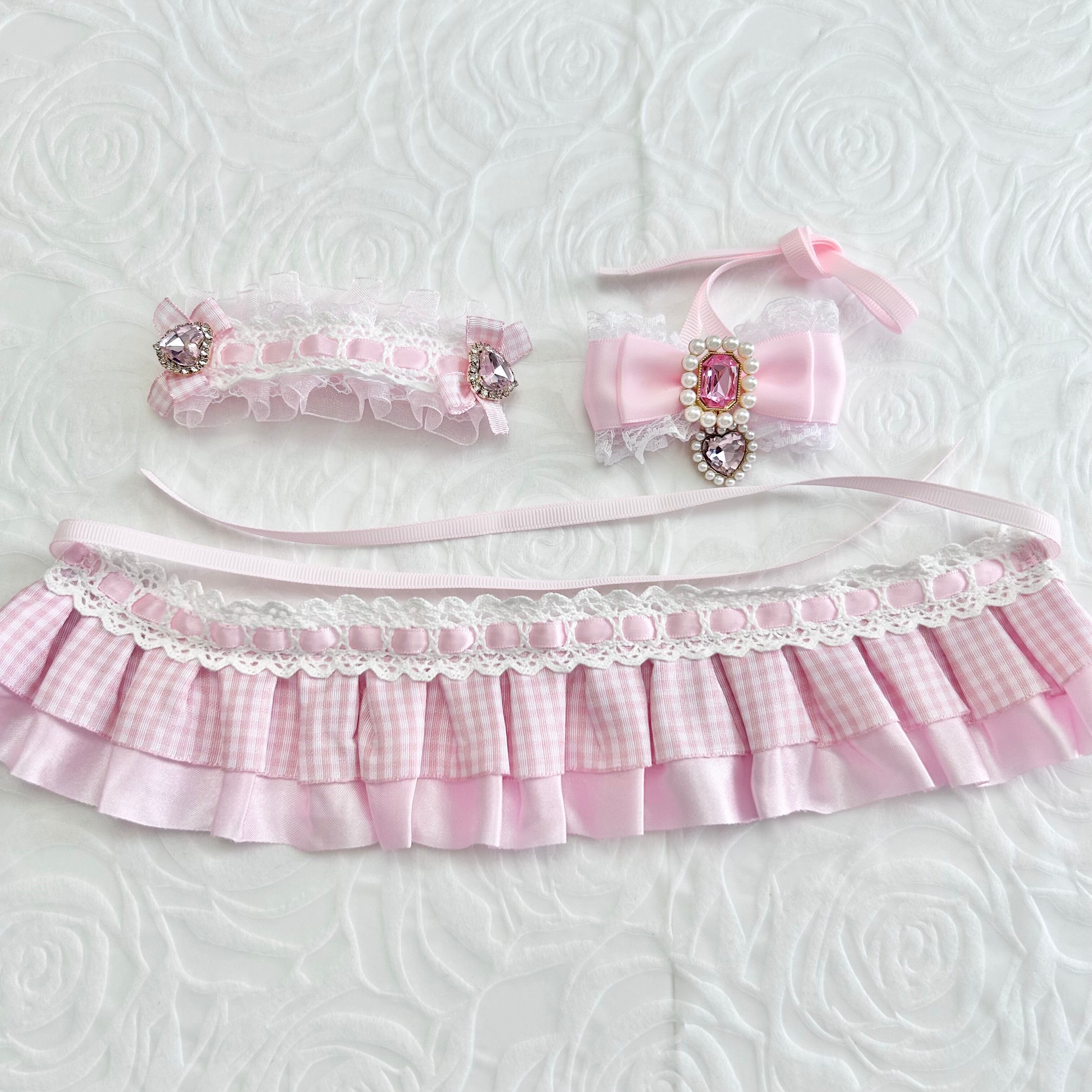 スカート部分と胸元のリボンは分かれているので気分によって取ったり、他の小物と合わせてご使用頂けます
