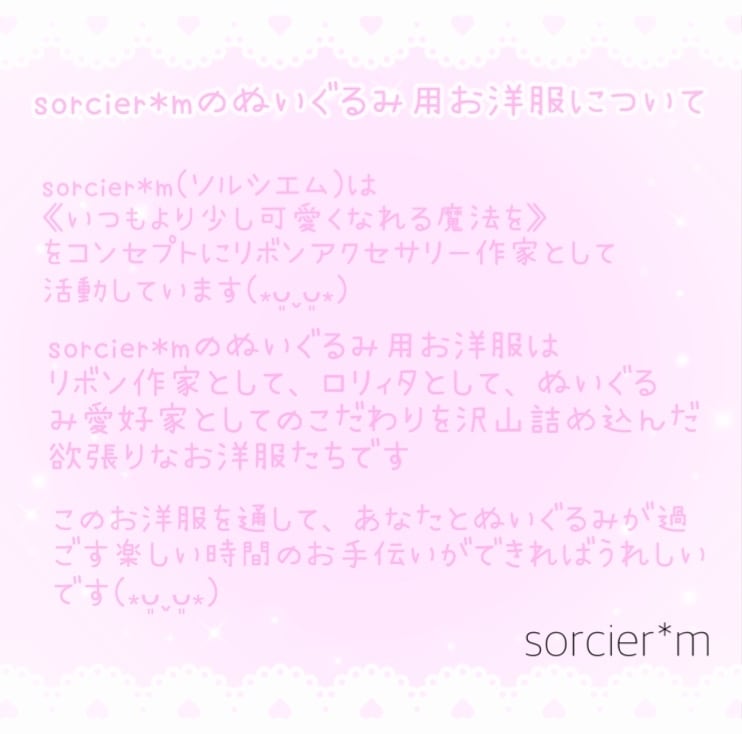 ˚。⋆୨୧ sorcier*mのぬいぐるみ用お洋服 ˚。⋆୨୧