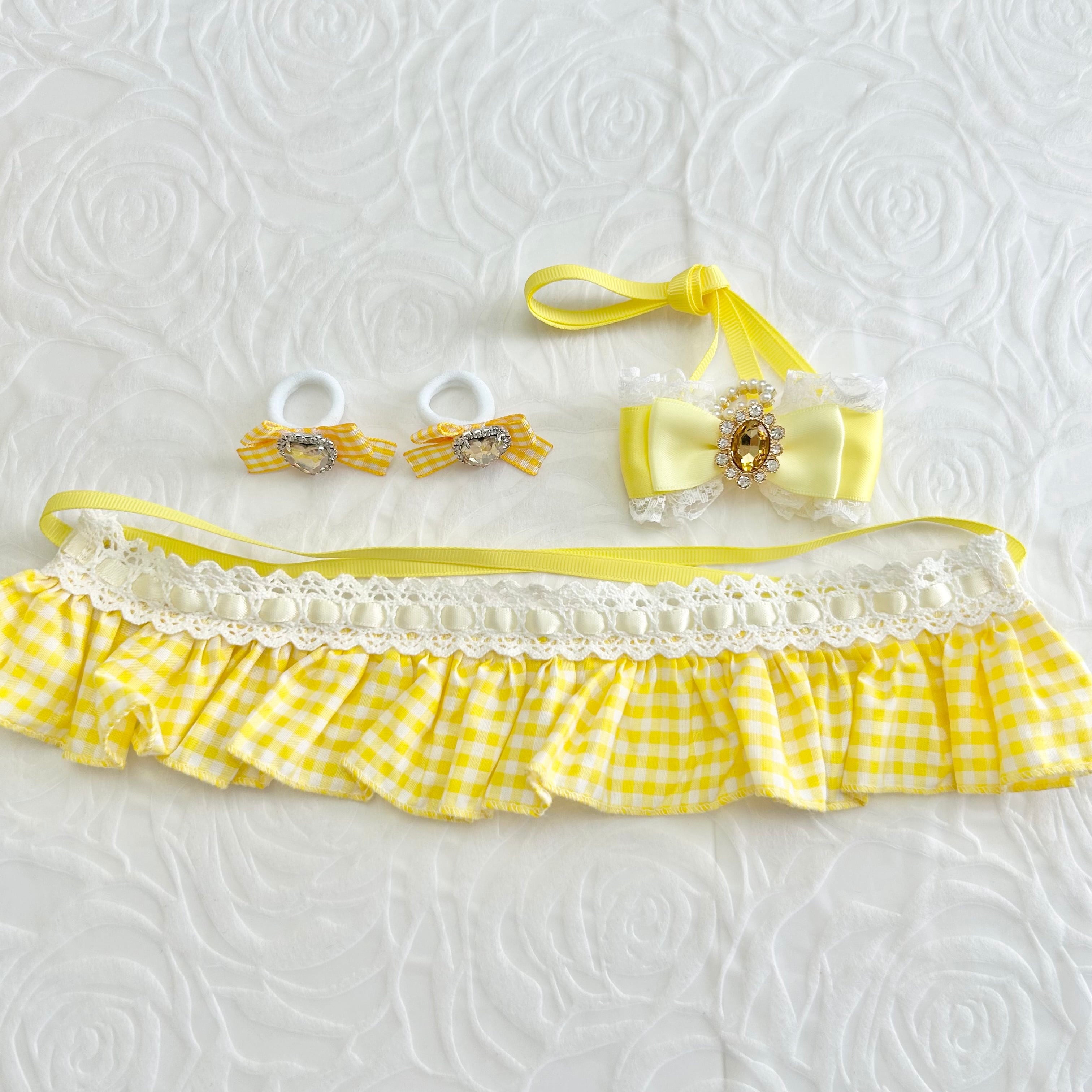 sorcier*m ぬいぐるみ用 ロリィタ服 ぬい服 ぬいぐるみ用 衣装 コスチューム 着せ替え ロリィタ きいろ イエロー ギンガムチェック
