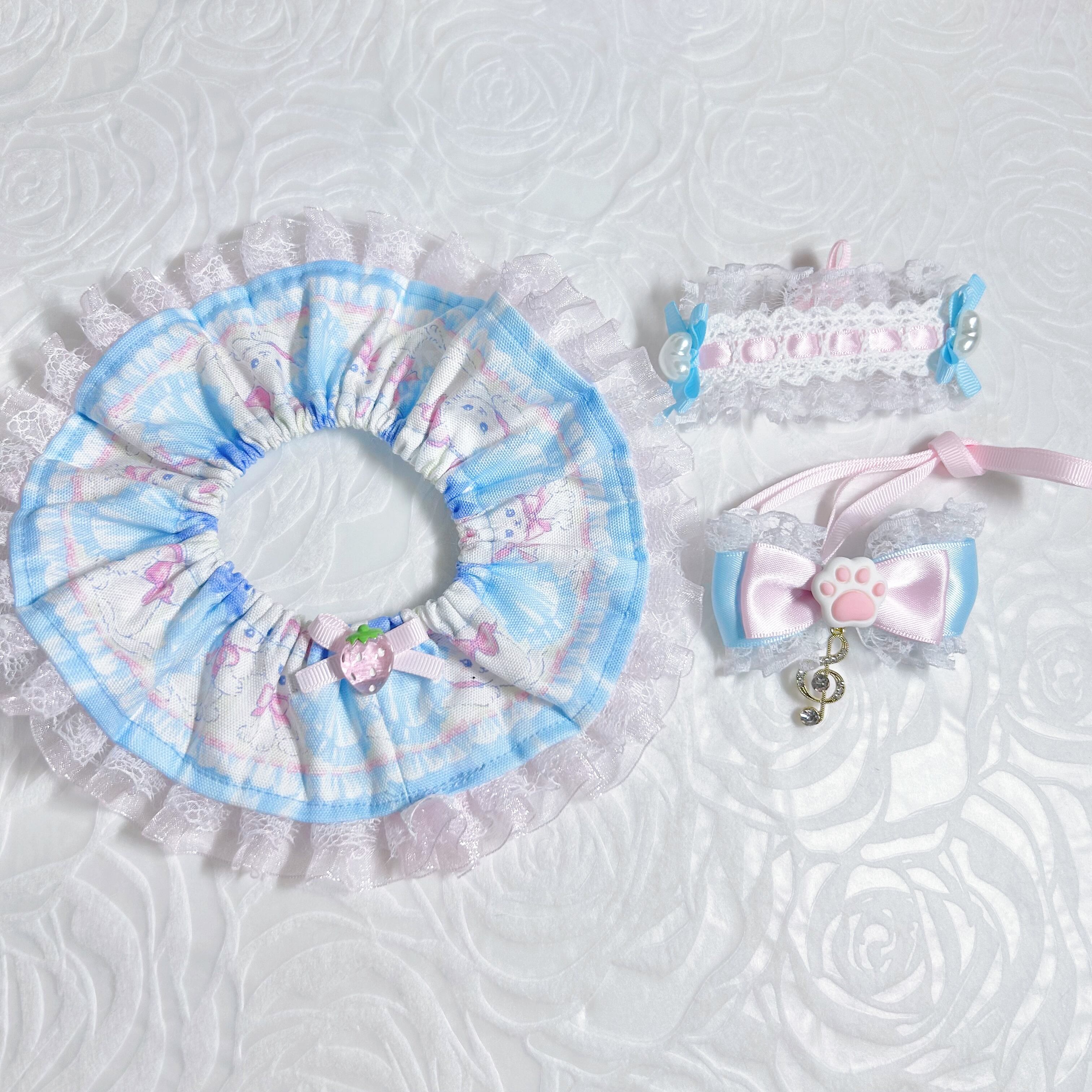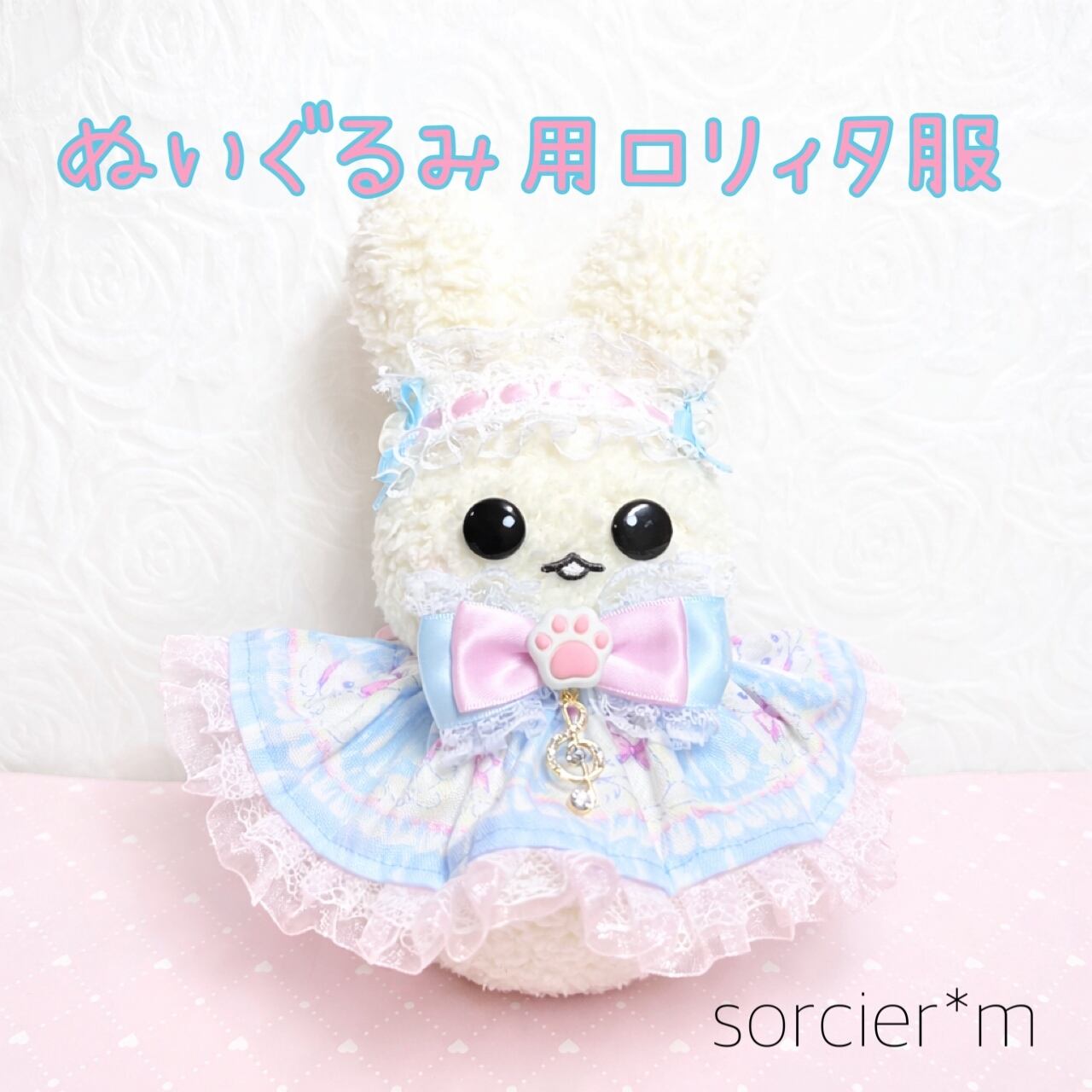 sorcier*m ぬいぐるみ用 ロリィタ服 ぬい服 ぬいぐるみ用 衣装 コスチューム 着せ替え ゆめかわいい 水色 猫柄 ピンク ヘッドドレス