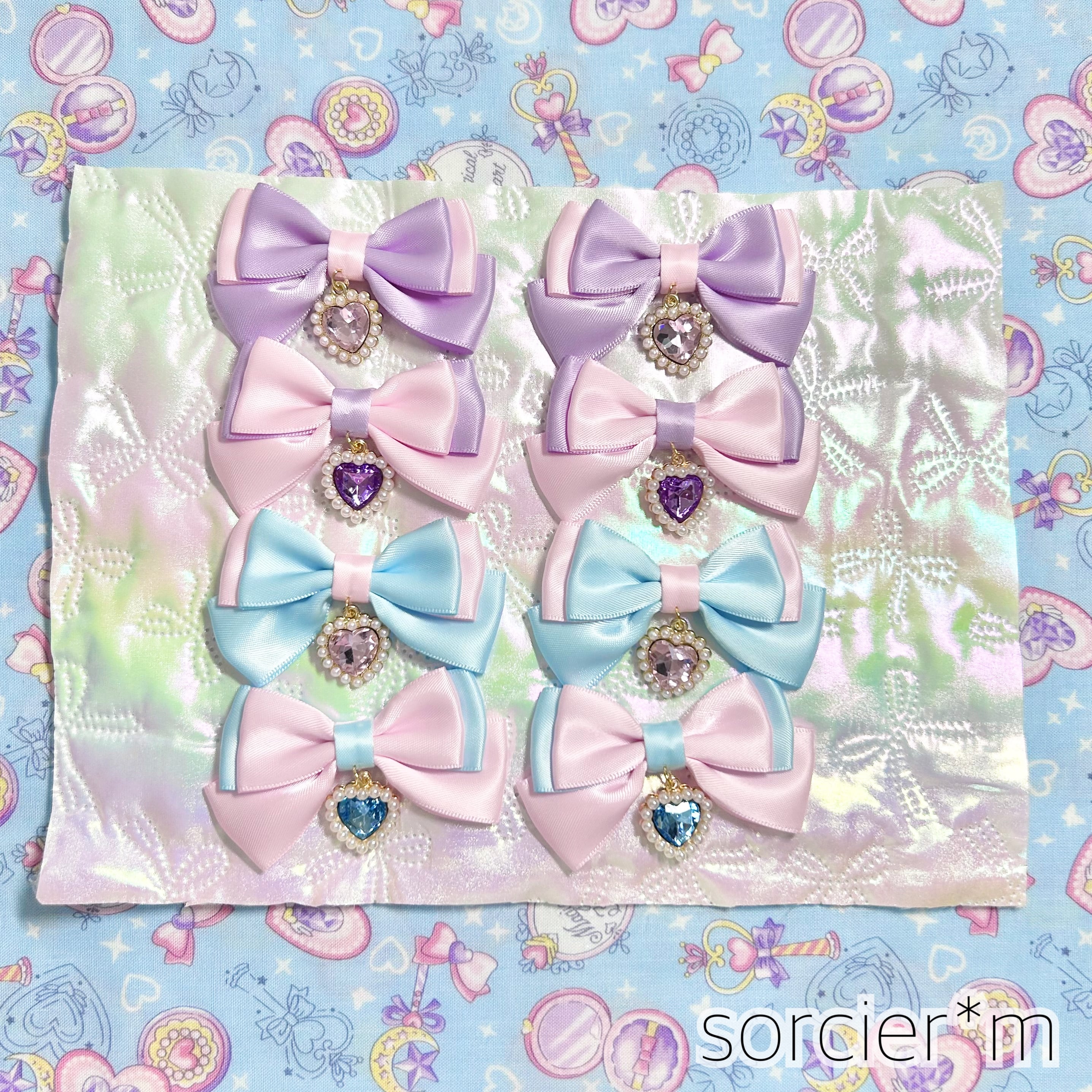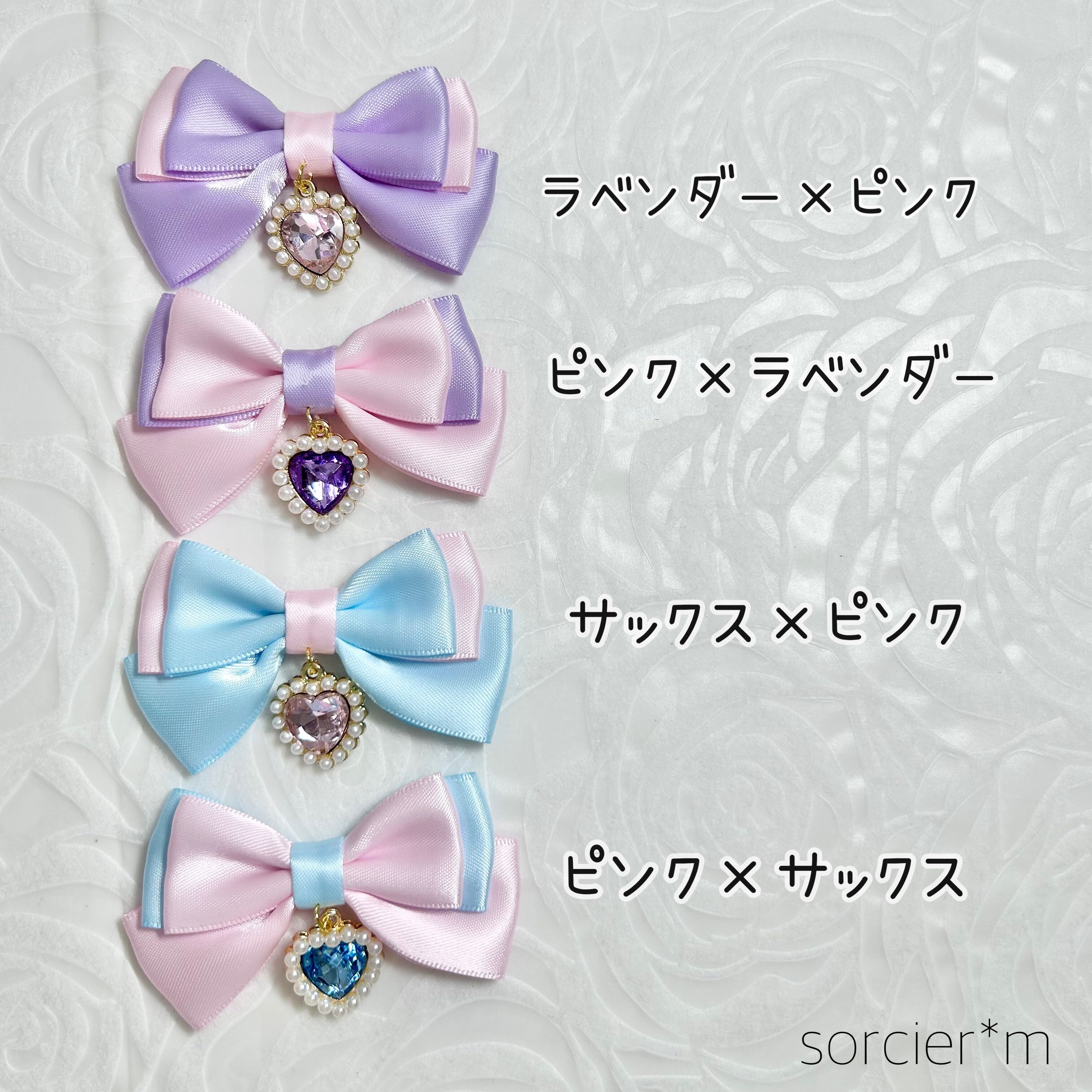 BABY Jewel ♡ 量産型 天使界隈 リボン ヘアクリップ ロリィタ ロリータ ピンク ビジュー ゆめかわいい ハート ラベンダー サックス 水色 ムラサキ