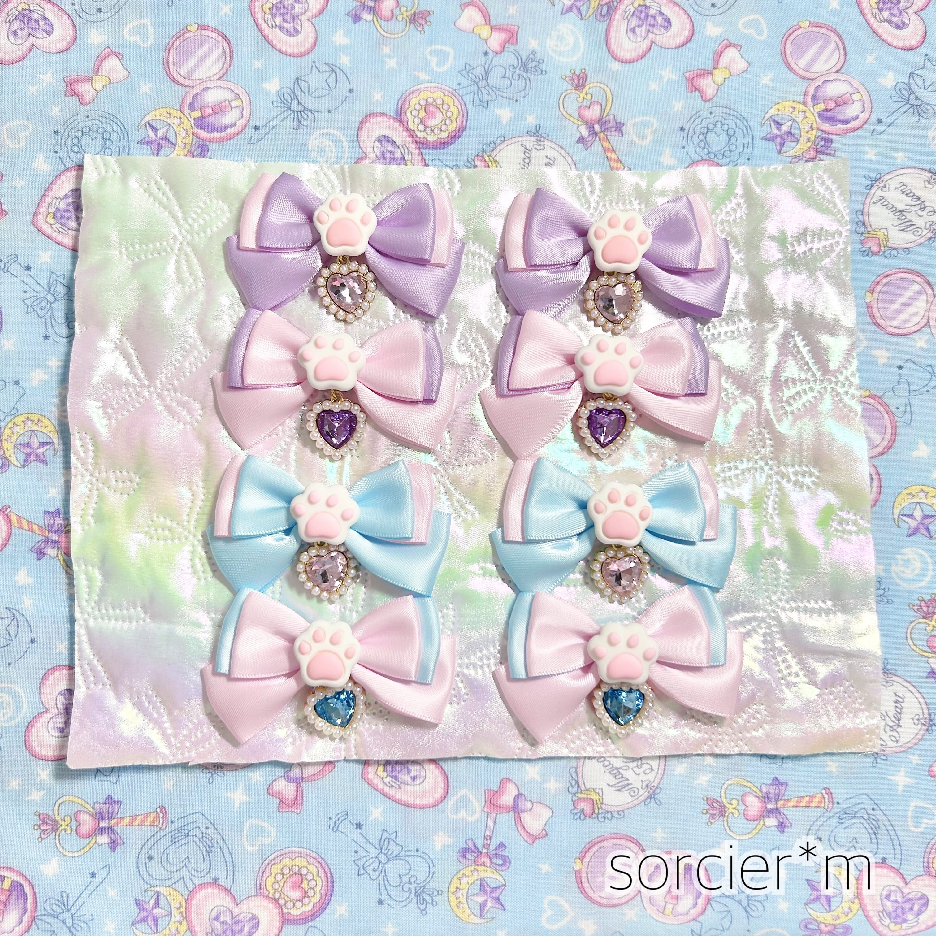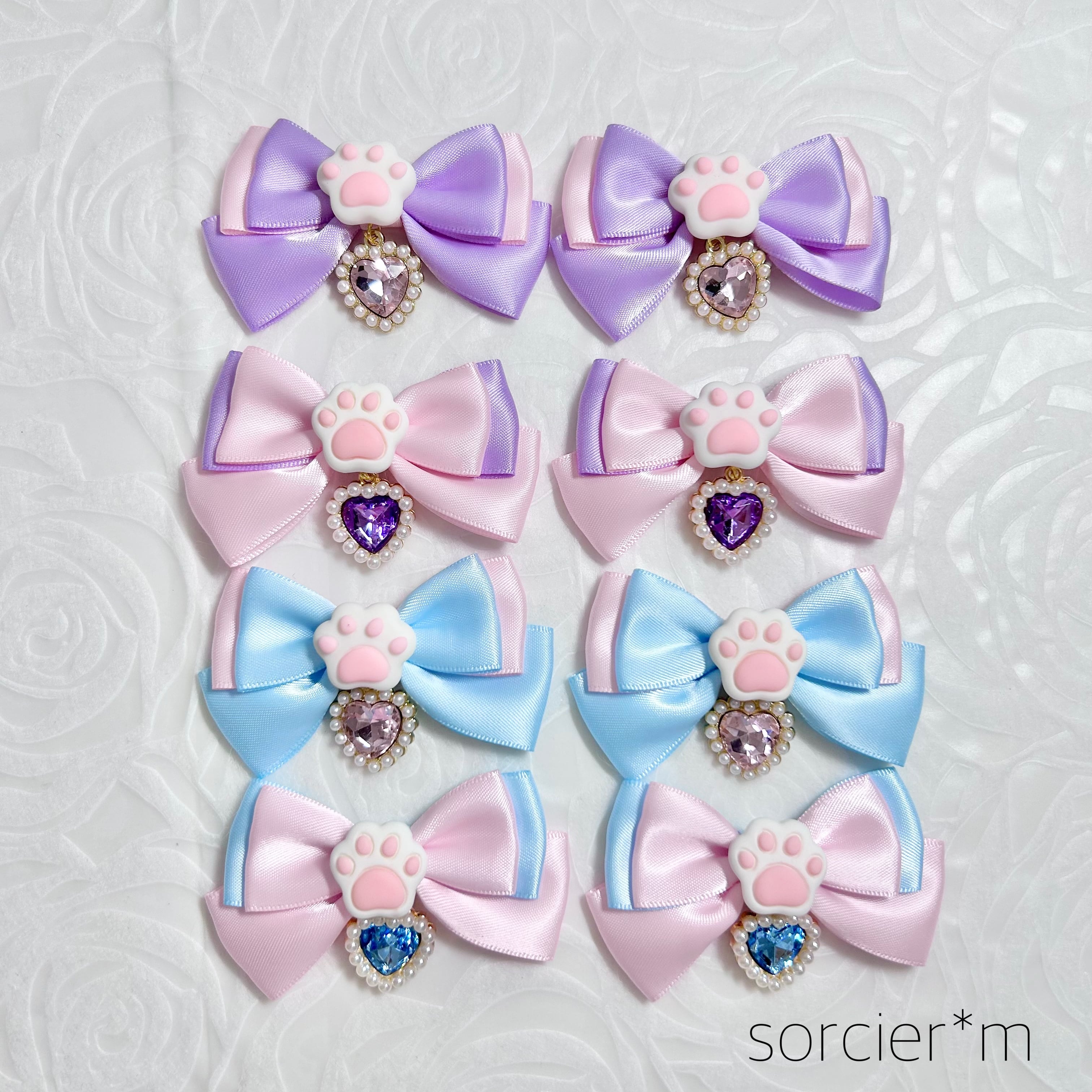 BABY Jewel 肉球 にくきゅう ♡ 量産型 天使界隈 リボン ヘアクリップ ロリィタ ロリータ ピンク ビジュー ゆめかわいい ハート ラベンダー サックス 水色 ムラサキ