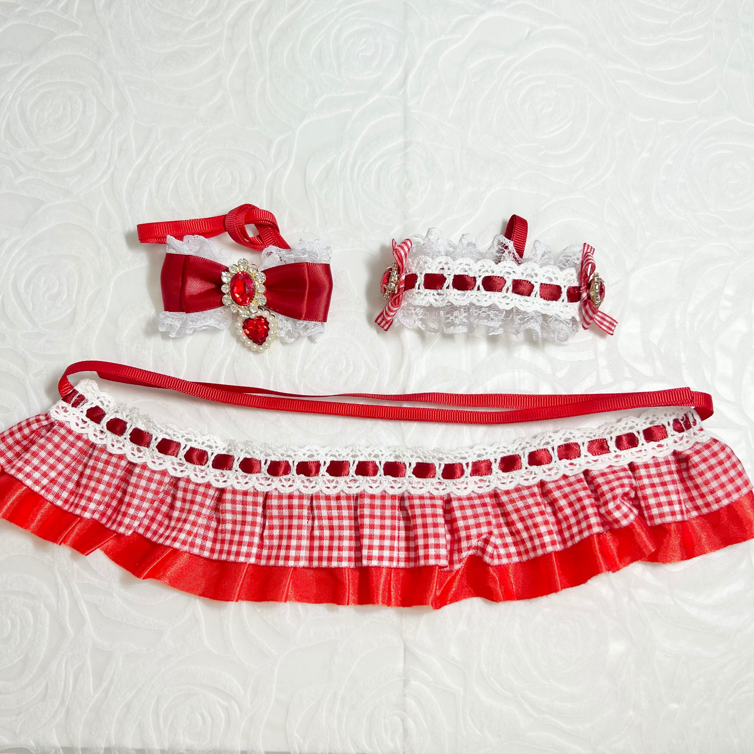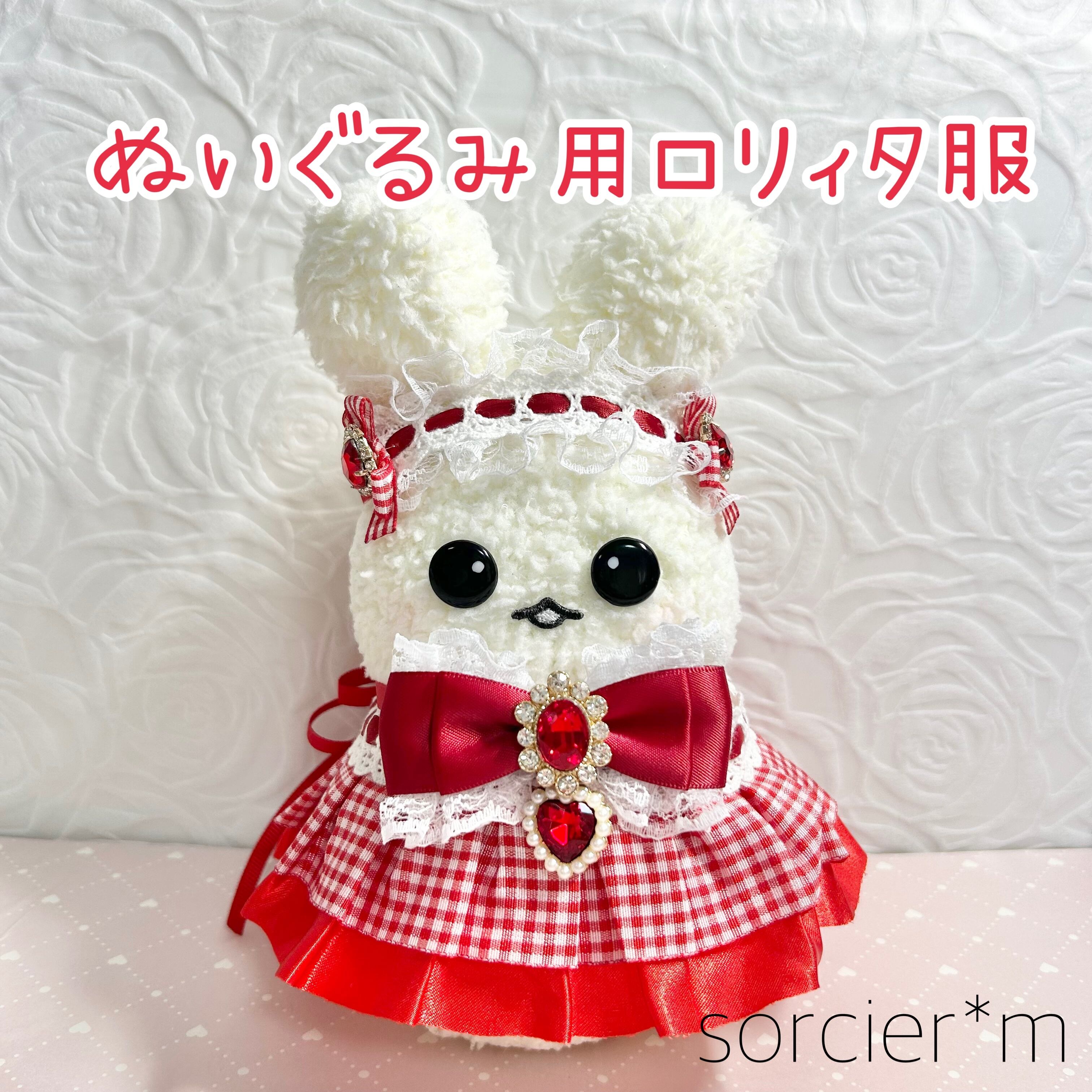 sorcier*m ぬいぐるみ用 ロリィタ服 ぬい服 ぬいぐるみ用 衣装 コスチューム 着せ替え ロリィタ 赤 あか ギンガムチェック
