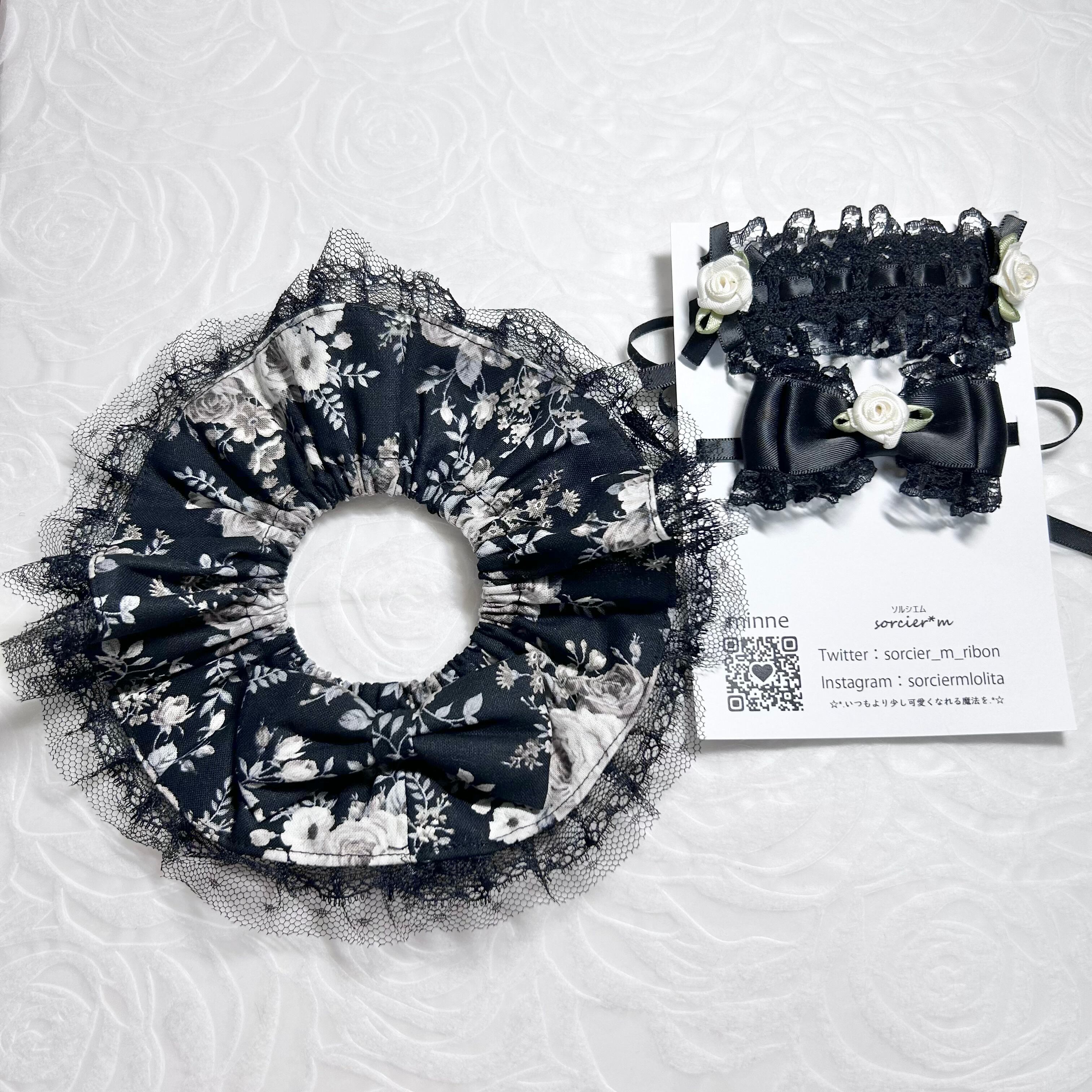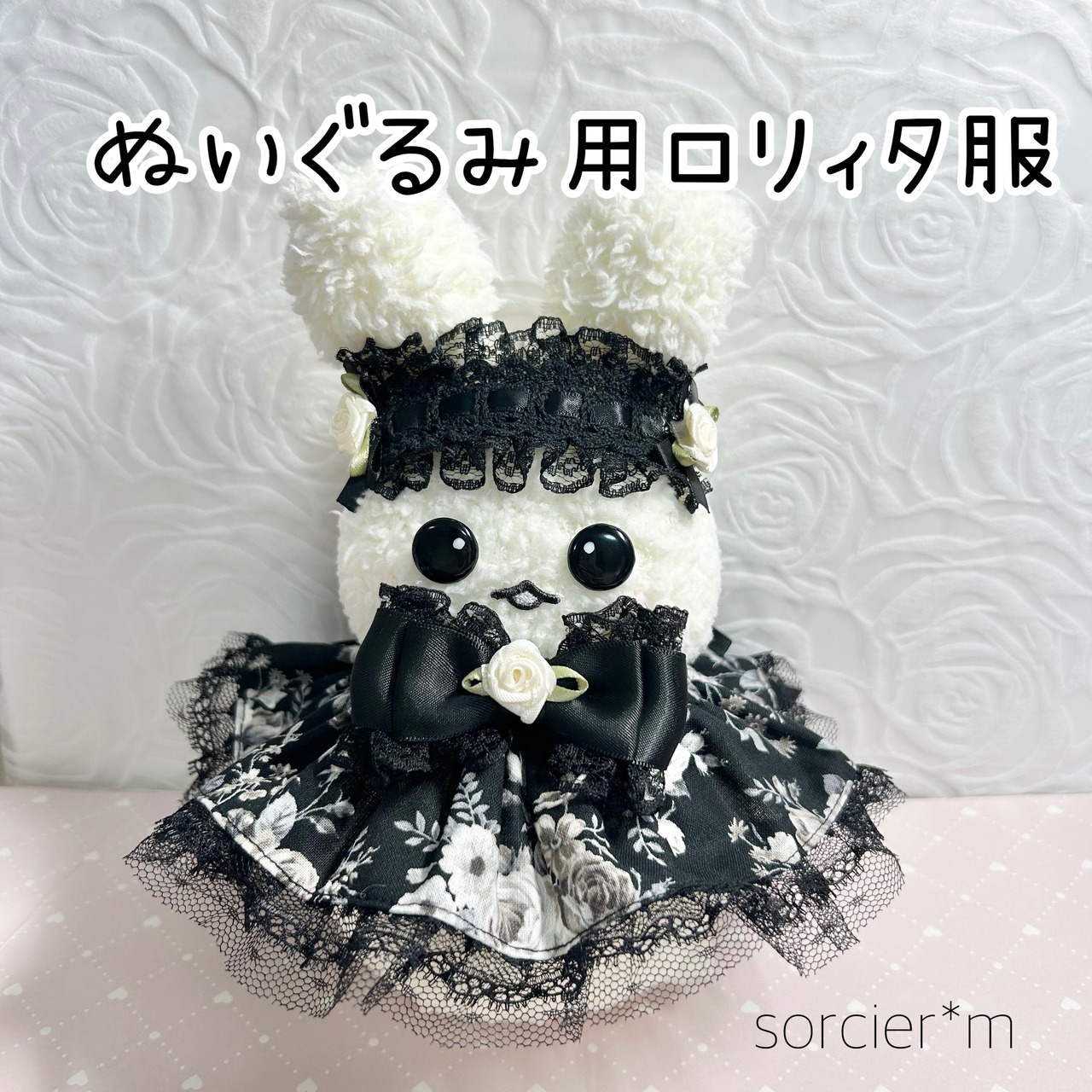 sorcier*m ぬいぐるみ用 ロリィタ服 ぬい服 ぬいぐるみ用 衣装 コスチューム 着せ替え ロリィタ ゴスロリ 黒 花柄 薔薇