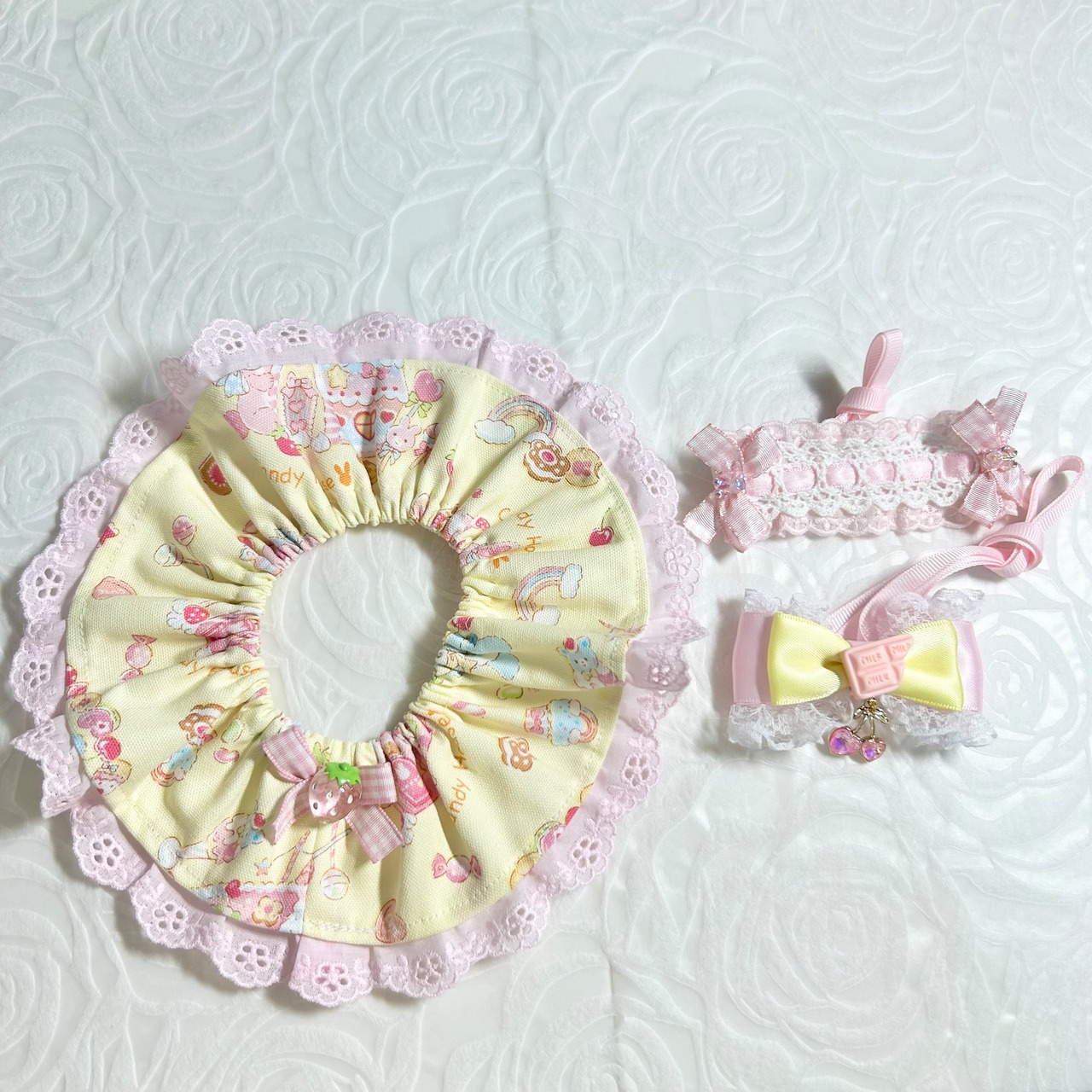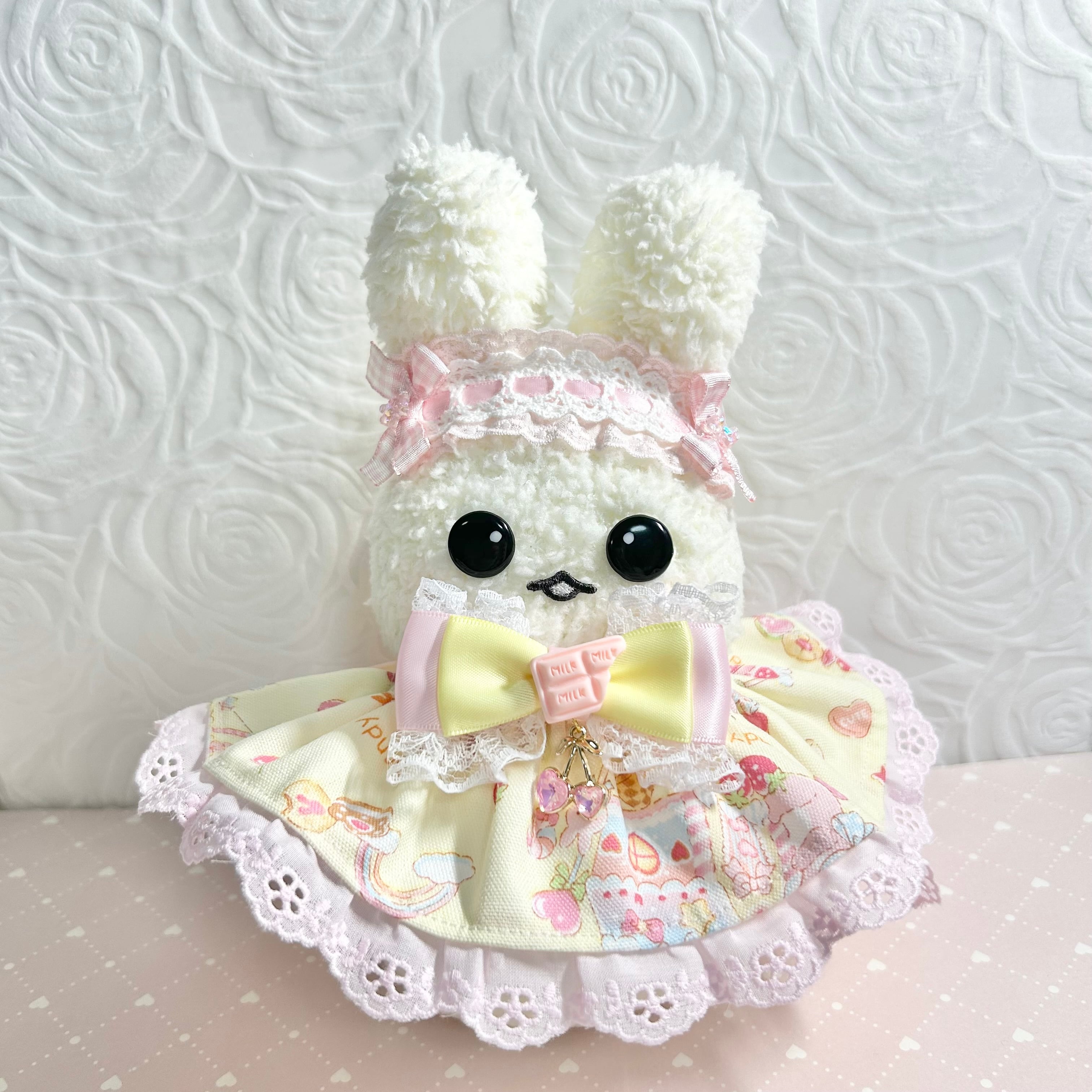 sorcier*m ぬいぐるみ用 ロリィタ服 ぬい服 ぬいぐるみ用 衣装 コスチューム 着せ替え ロリィタ 甘ロリ 黄色 きいろ ピンク お菓子柄 スイーツ