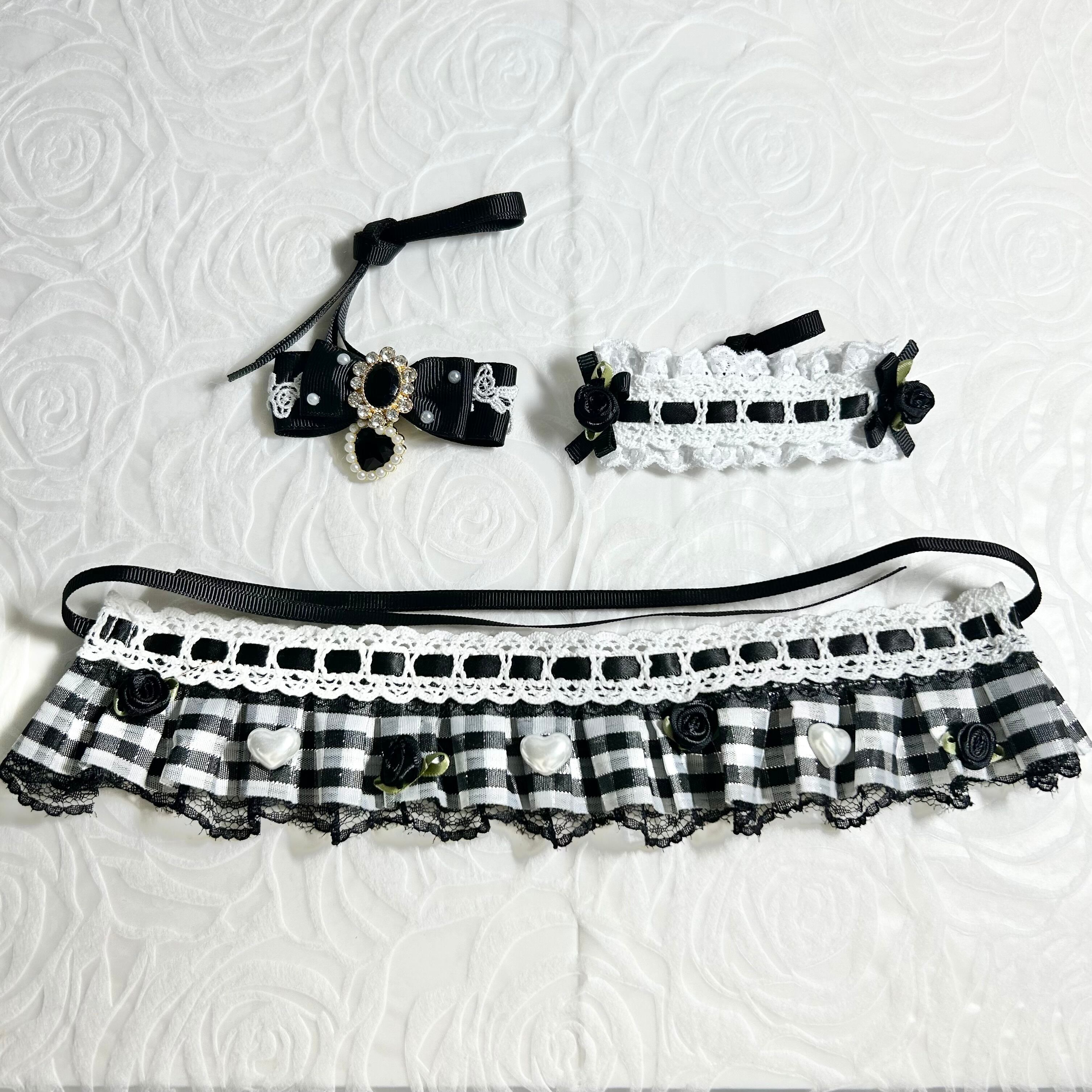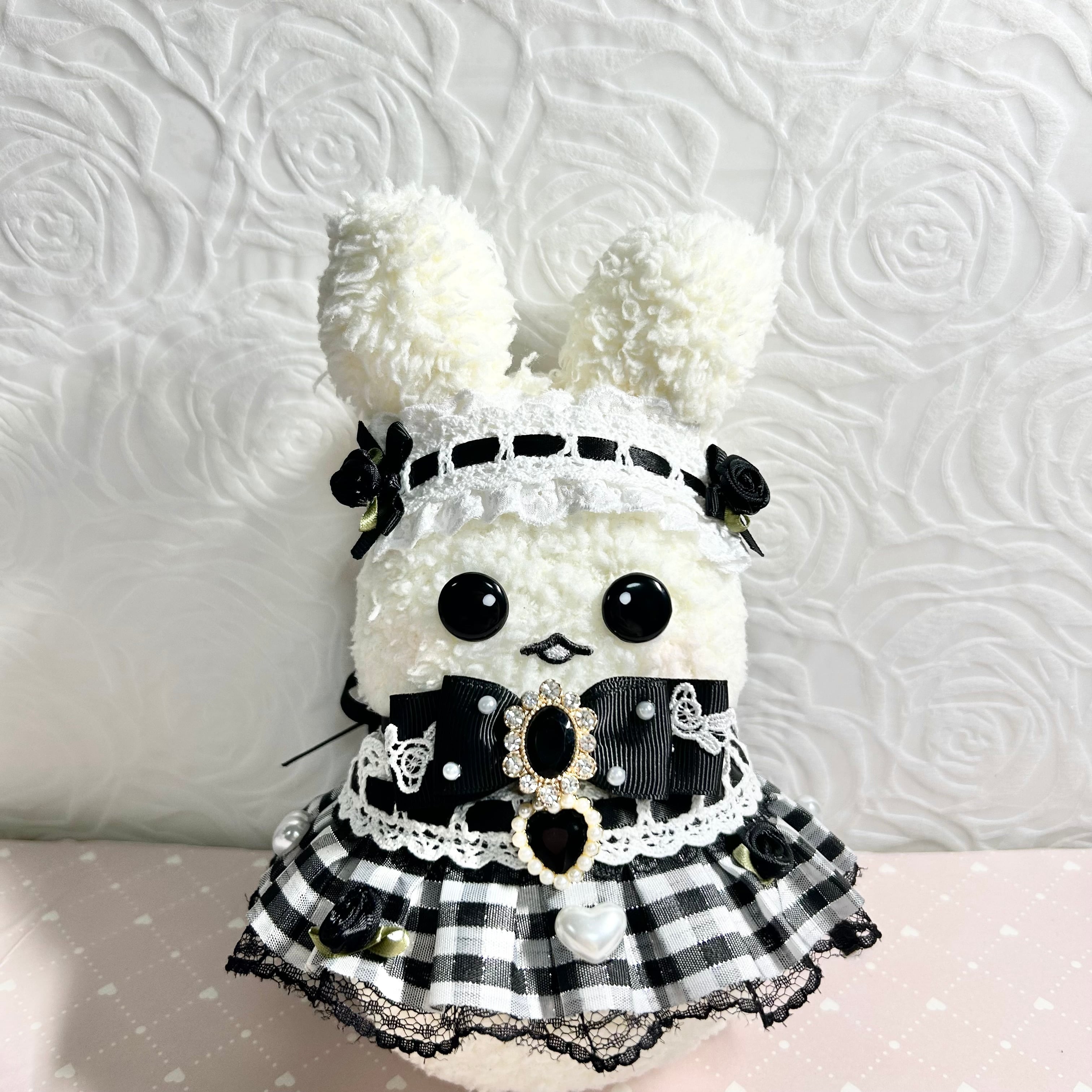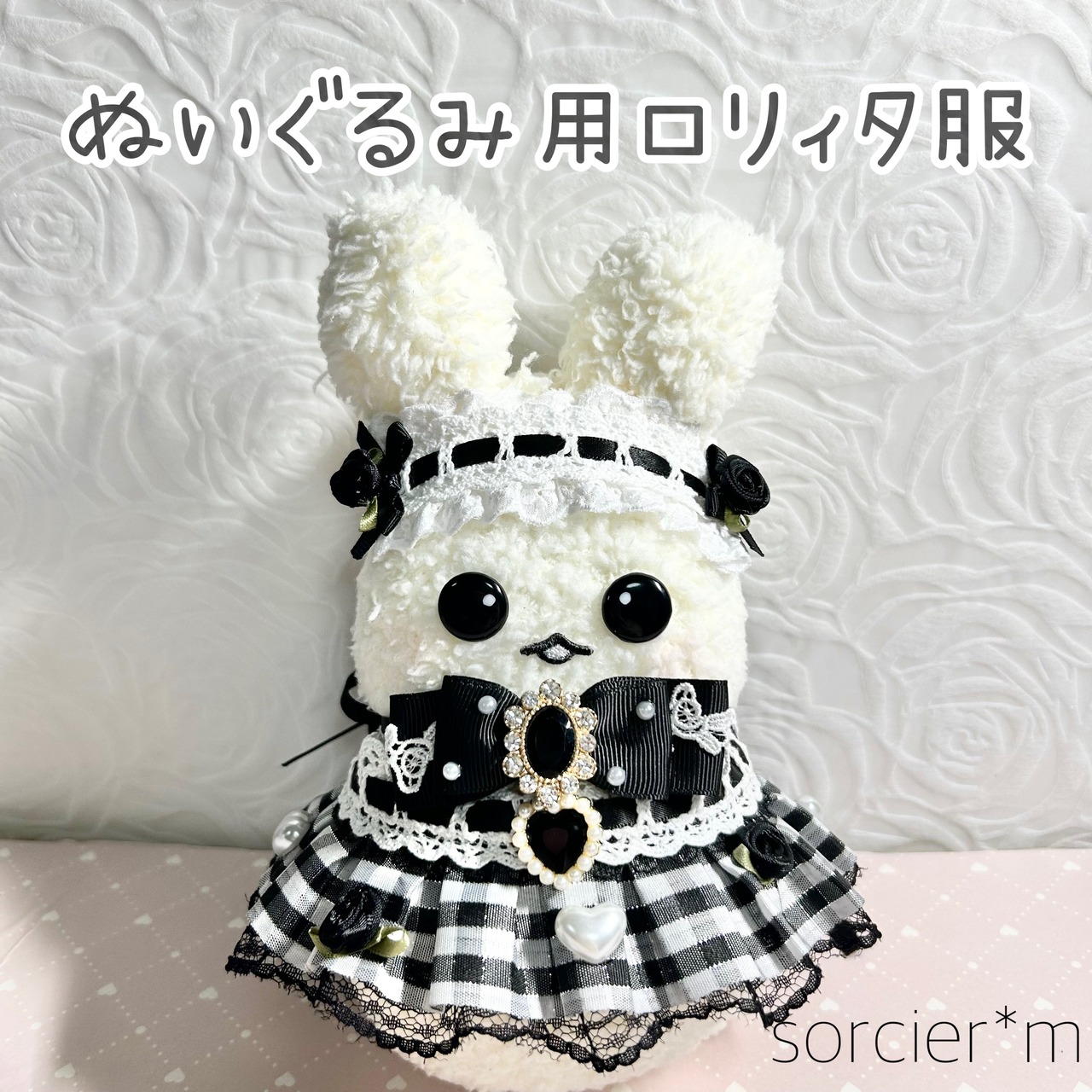 sorcier*m ぬいぐるみ用 ロリィタ服 ぬい服 ぬいぐるみ用 衣装 コスチューム 着せ替え ロリィタ 黒 ブラック 巻きバラ ギンガムチェック