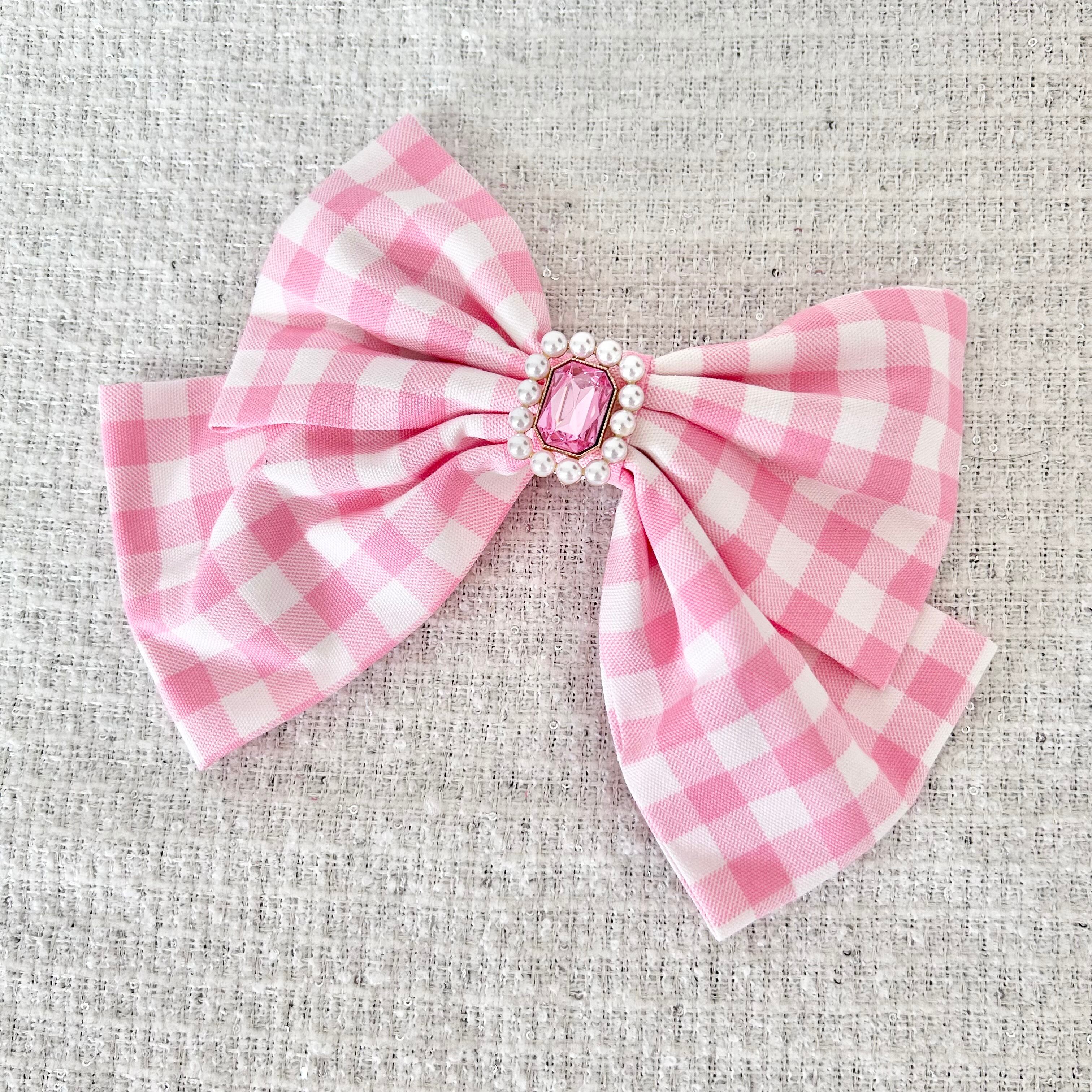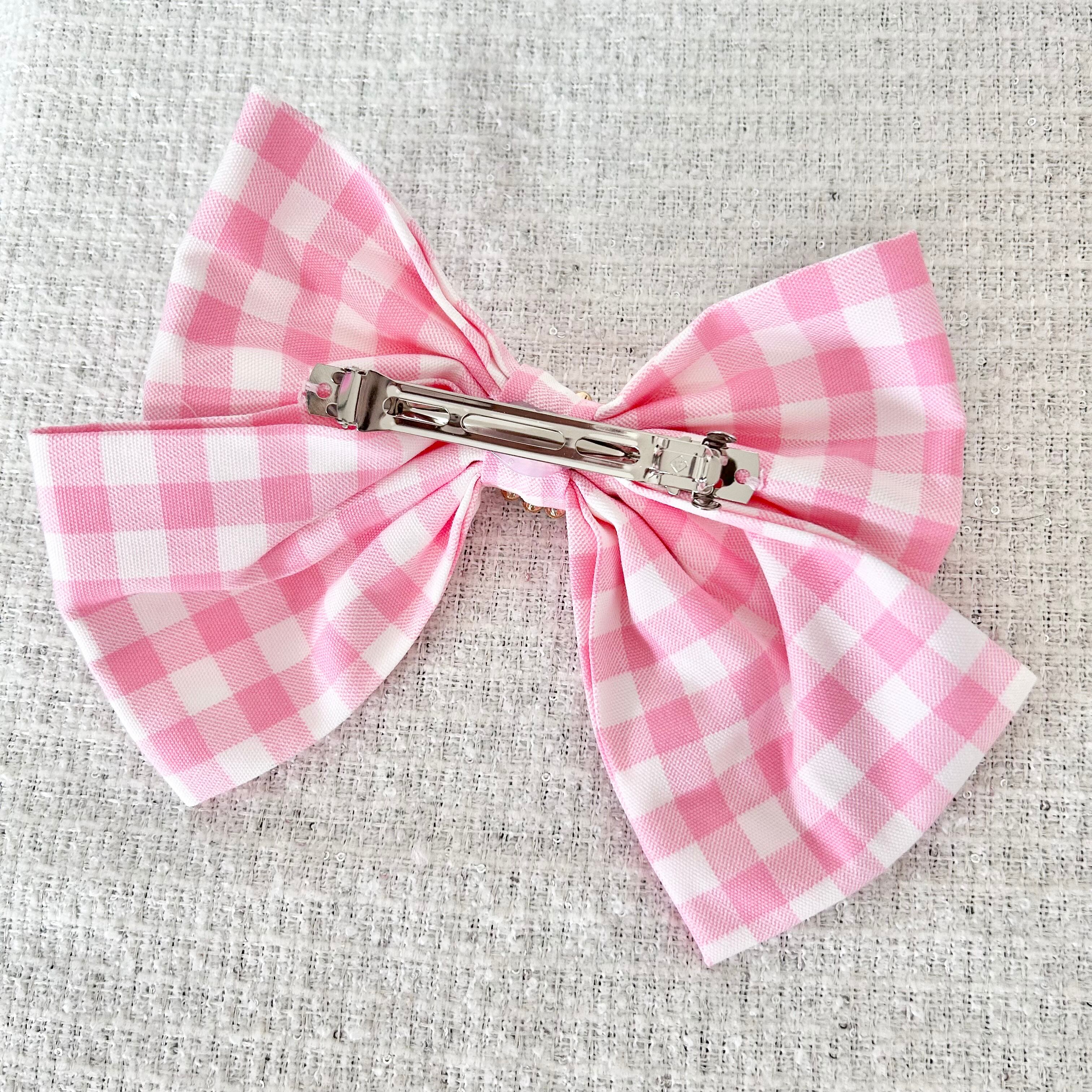 【ゴスロリマーケット アフター通販】リボン バレッタ 大きいリボン ロリータ ロリィタ ポニーテール アイドル衣装 甘ロリ ギンガムチェック ブロックチェック ピンク