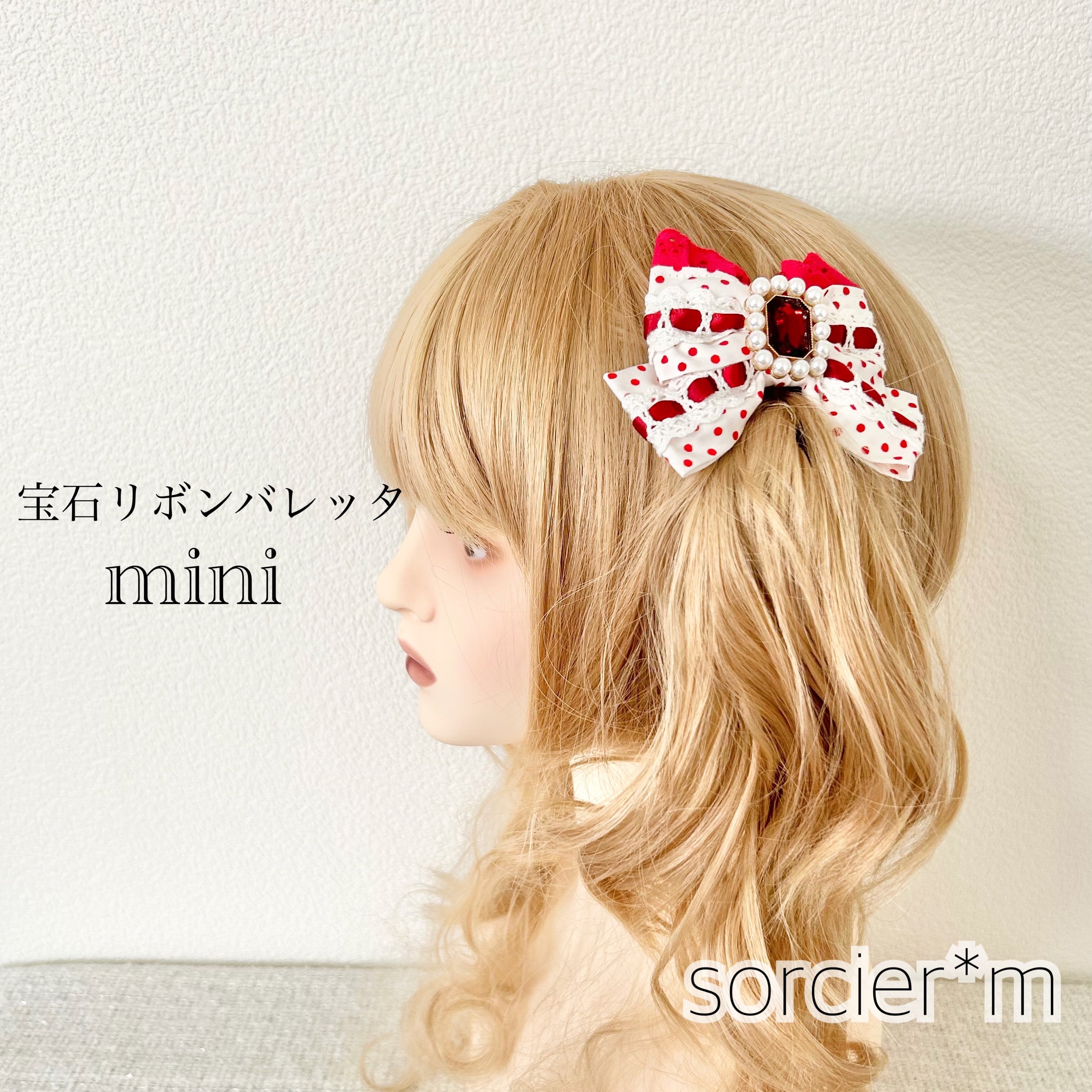 【ゴスロリマーケット アフター通販】リボン ヘアクリップ はしごレース ロリータ ロリィタ Lolita パール ツインテール 量産型 キラキラ ビジュー ハート ヘアメゴスロリマーケット アフター通販】はしごレース × ドット 宝石リボンバレッタ mini 赤 白 紅白 水玉 ドッロリィタ ロリータ リボン 懐古ロリータ 懐古ロリィタ 甘ロリ Lolita ribbon ドット 赤 白