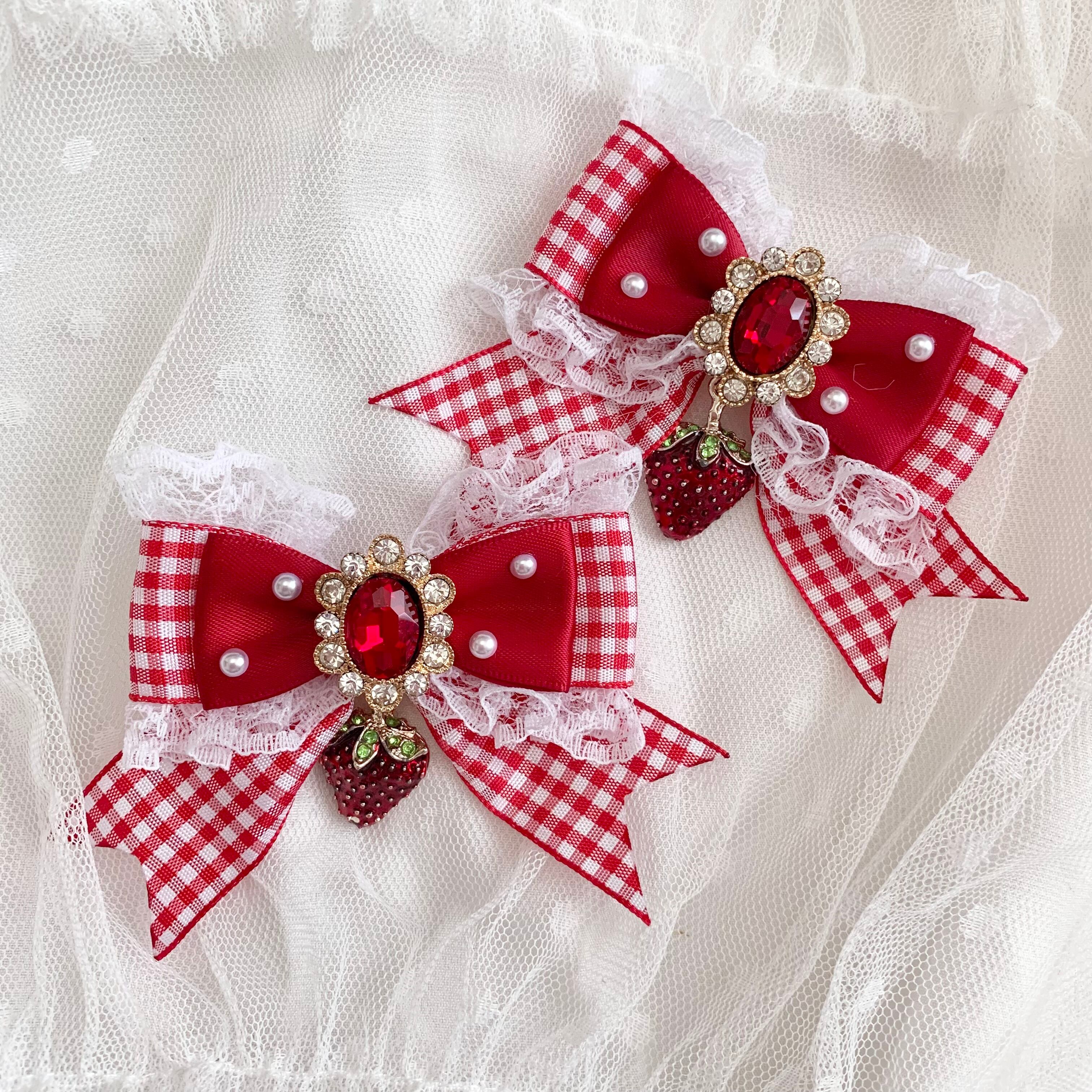 王道♡ギンガムチェック×苺 リボンヘアクリップ
