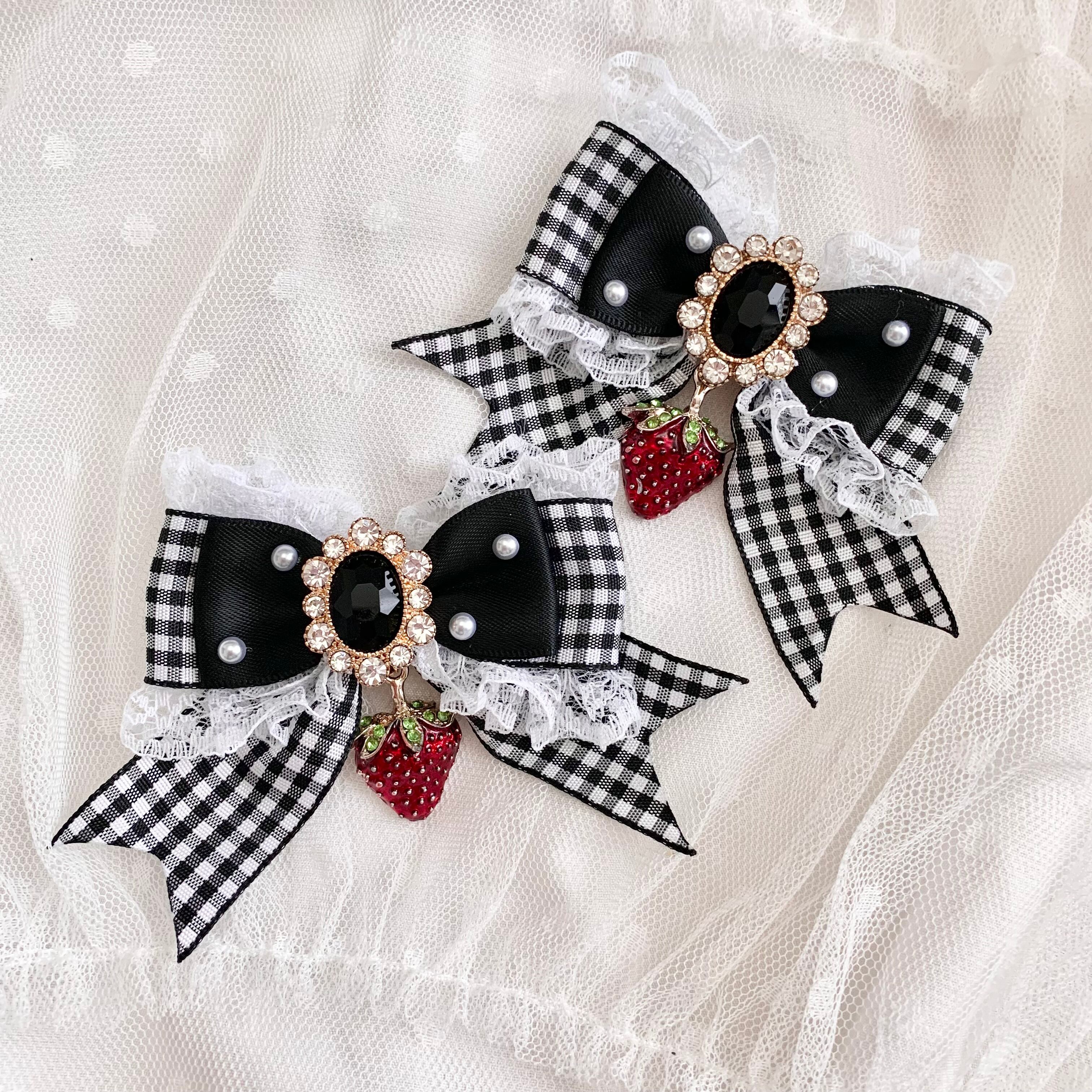 Candy strawberry リボン ヘアクリップ ♡ ギンガムチェック 苺 いちご 赤 あか RED レッド 黒 くろ ブラック ツインテール ロリィタ ロリータ アイドル 推し活 量産型