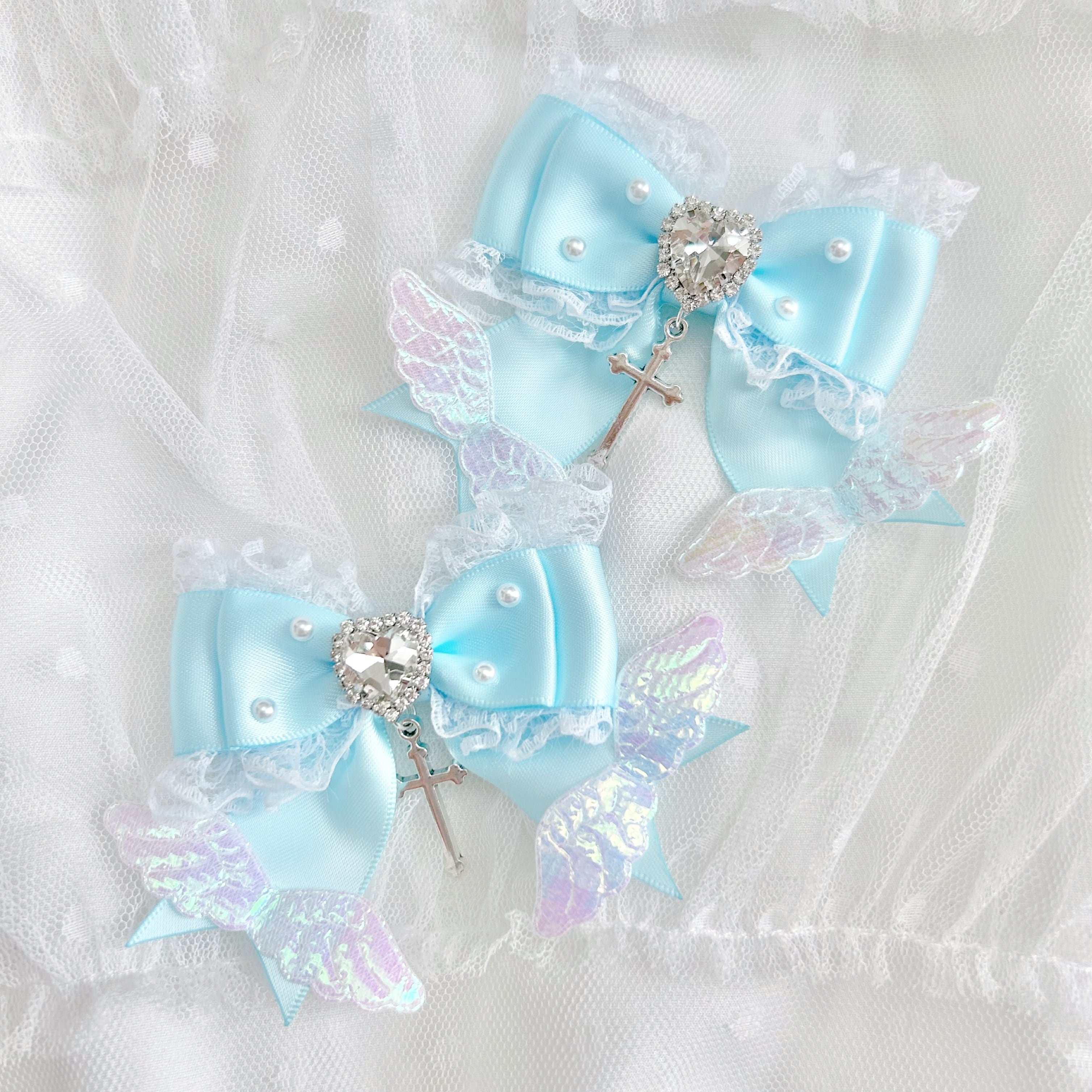 Candy Angel リボン ヘアクリップ ♡ 天使界隈 十字架 天使のはね 白 ホワイト 水色 サックス 推し活 サブカル