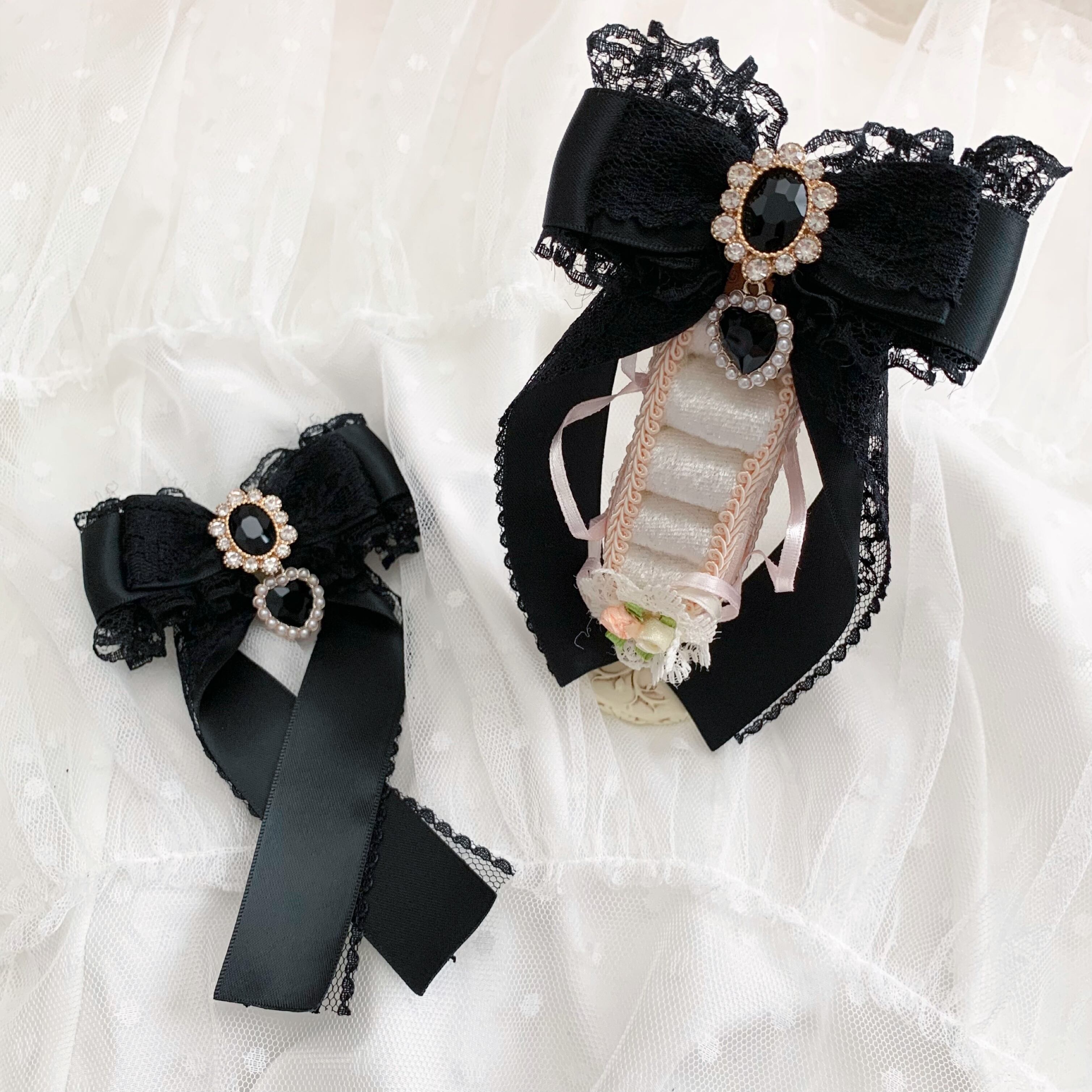 サテンリボンに黒い花柄レースを重ねており、上品で大人かわいいデザインです(⁎ᴗ͈ˬᴗ͈⁎)