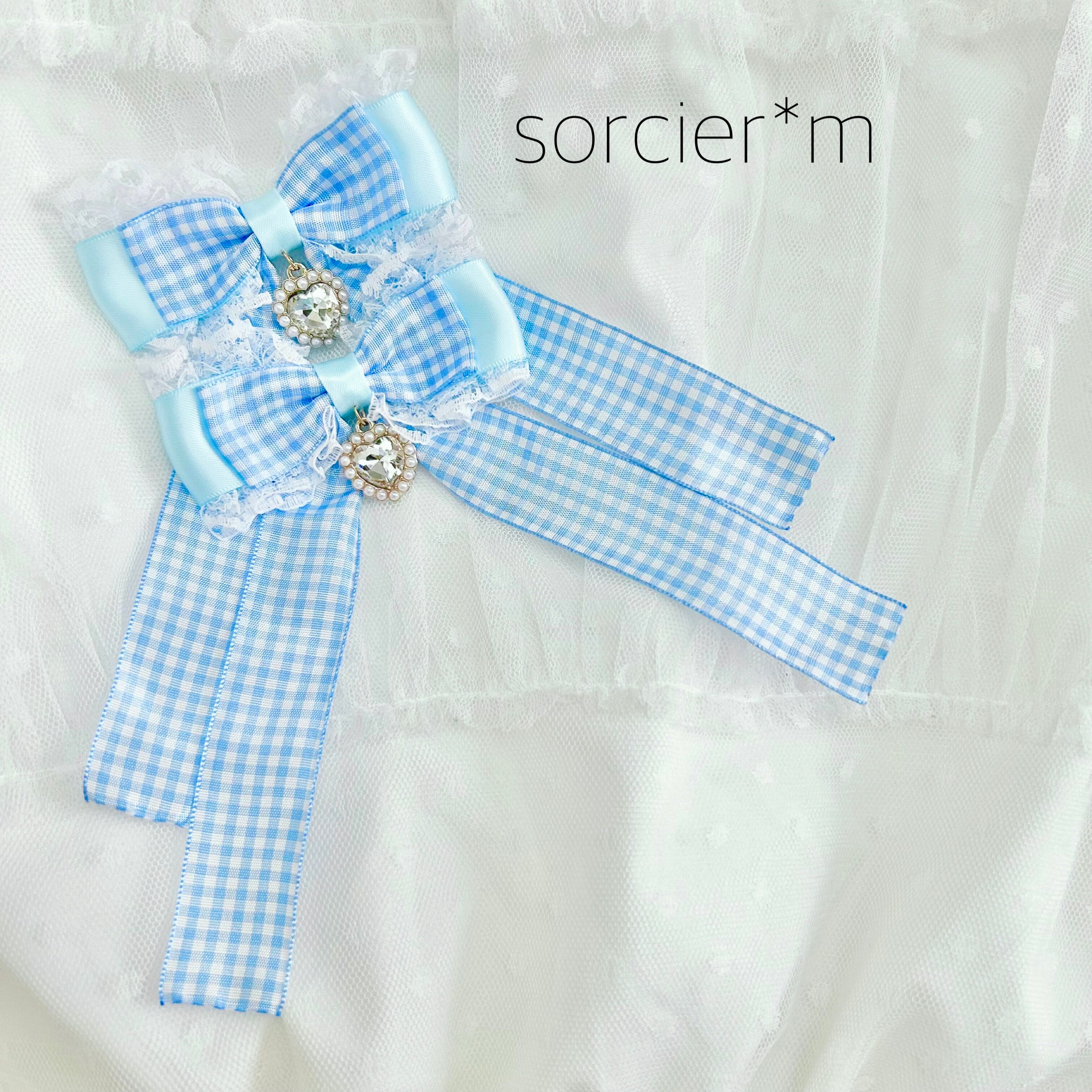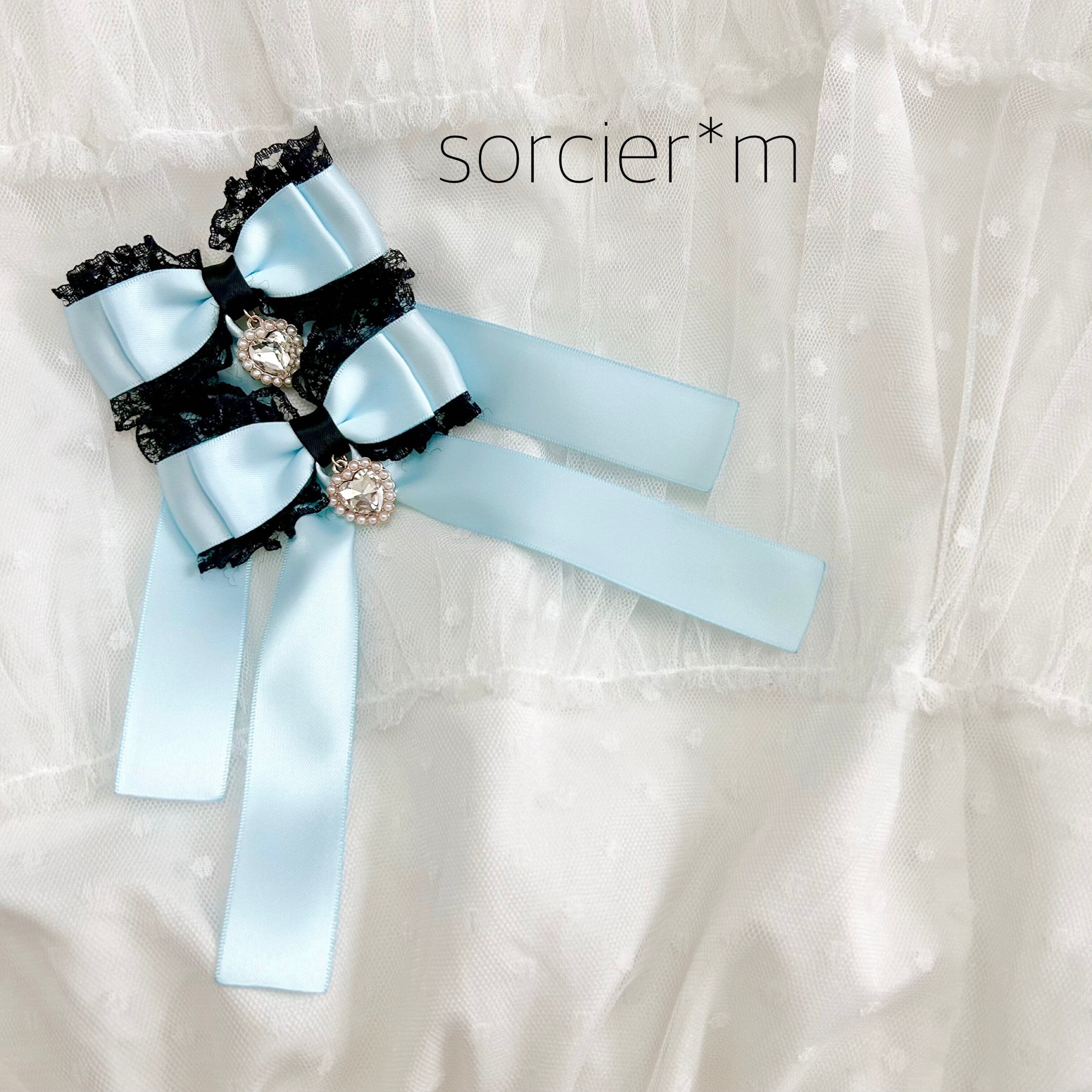 sorcier*m ソルシエム リボン ヘアクリップ ヘアピン 量産型 推し活 推し色 ヘアメ ヘアメリボン ツインテール ポニーテール プレゼント アイドル メイド 衣装 入学式 入園式 卒業式 卒園式 体育祭 ライブ sorcier*m 推しカラー 発表会 中学生 高校生 誕生日 生誕祭 sorcier*m 原宿 サブカル アイドル衣装 コンカフェ メイド喫茶 ソルシエム お給仕アイテム ソルシエム ビジュー チャーム ♡ お揃い 双子 メンカラ 参戦服 キラキラ サテンリボン sorcier*m ハート ロリィタ ロリータ 無地 レース アリス 水色