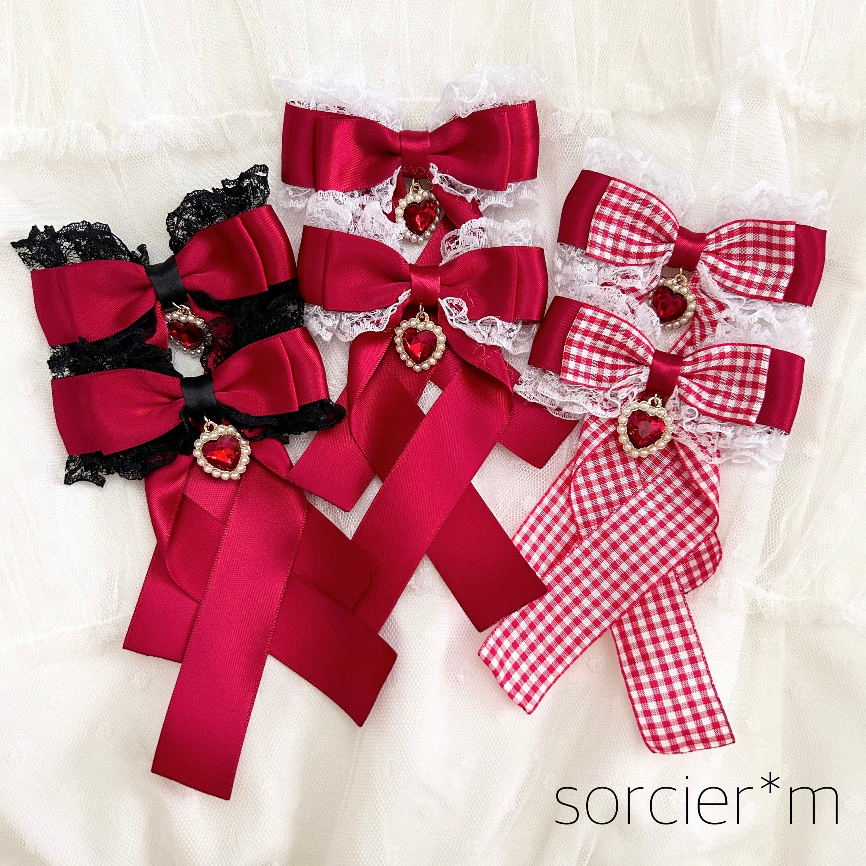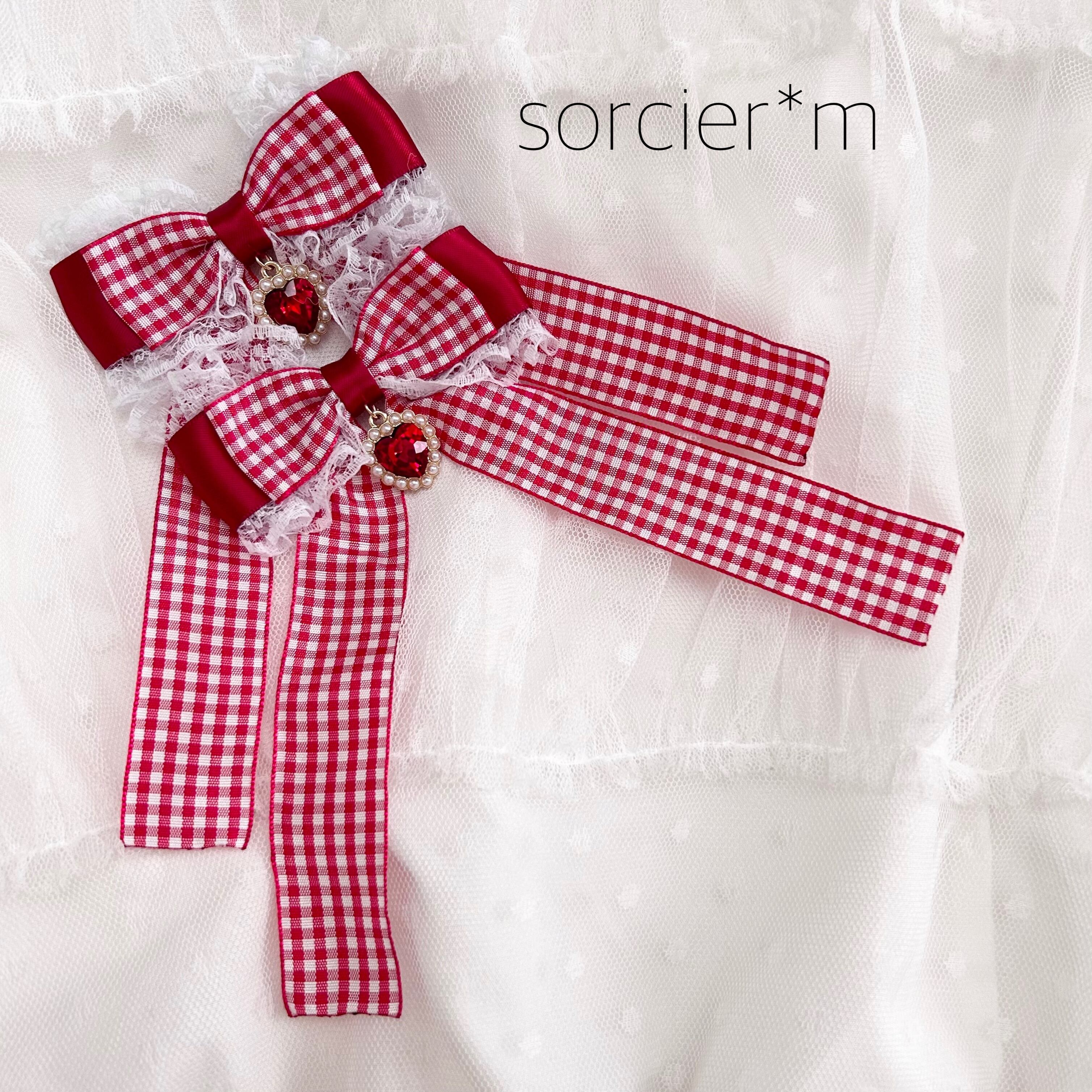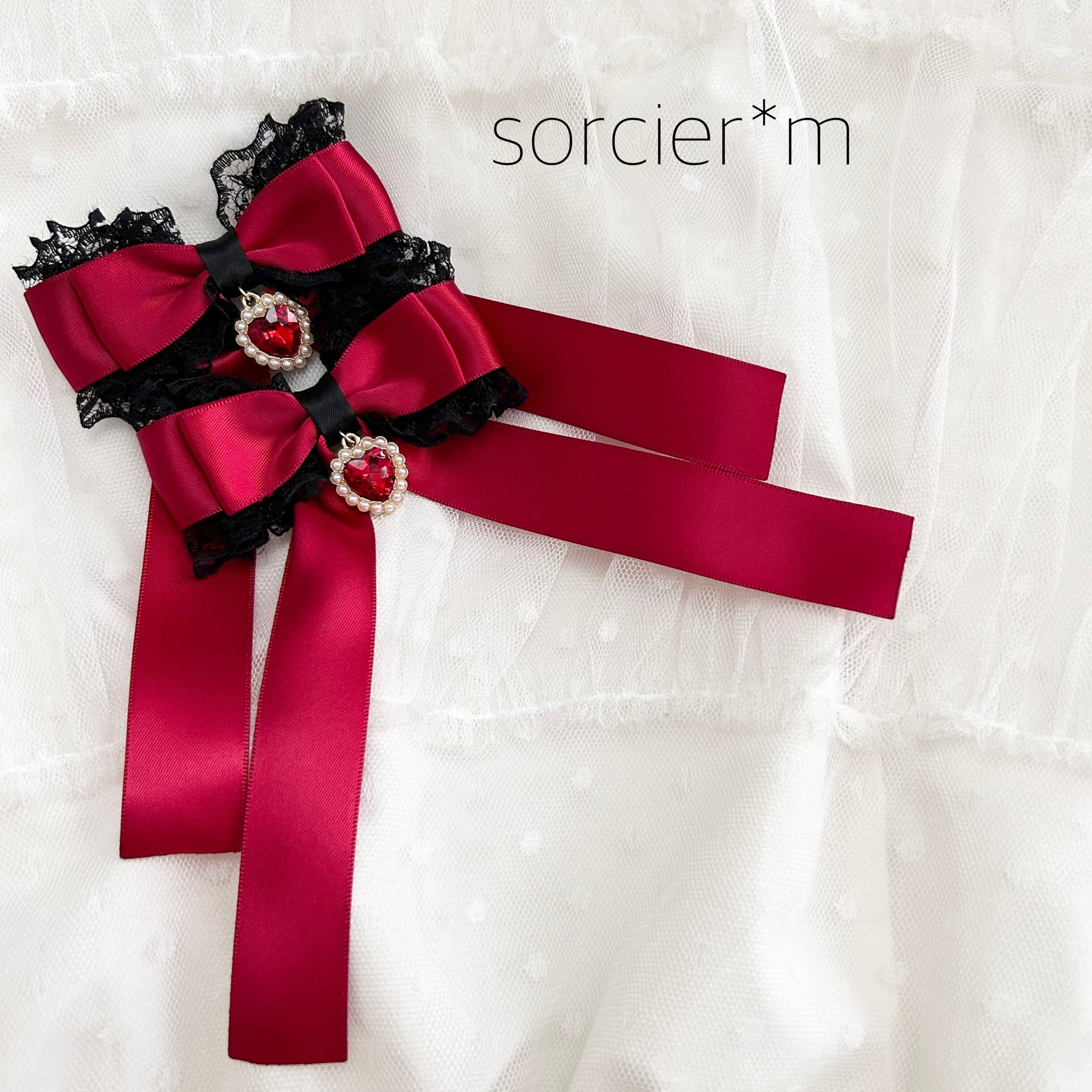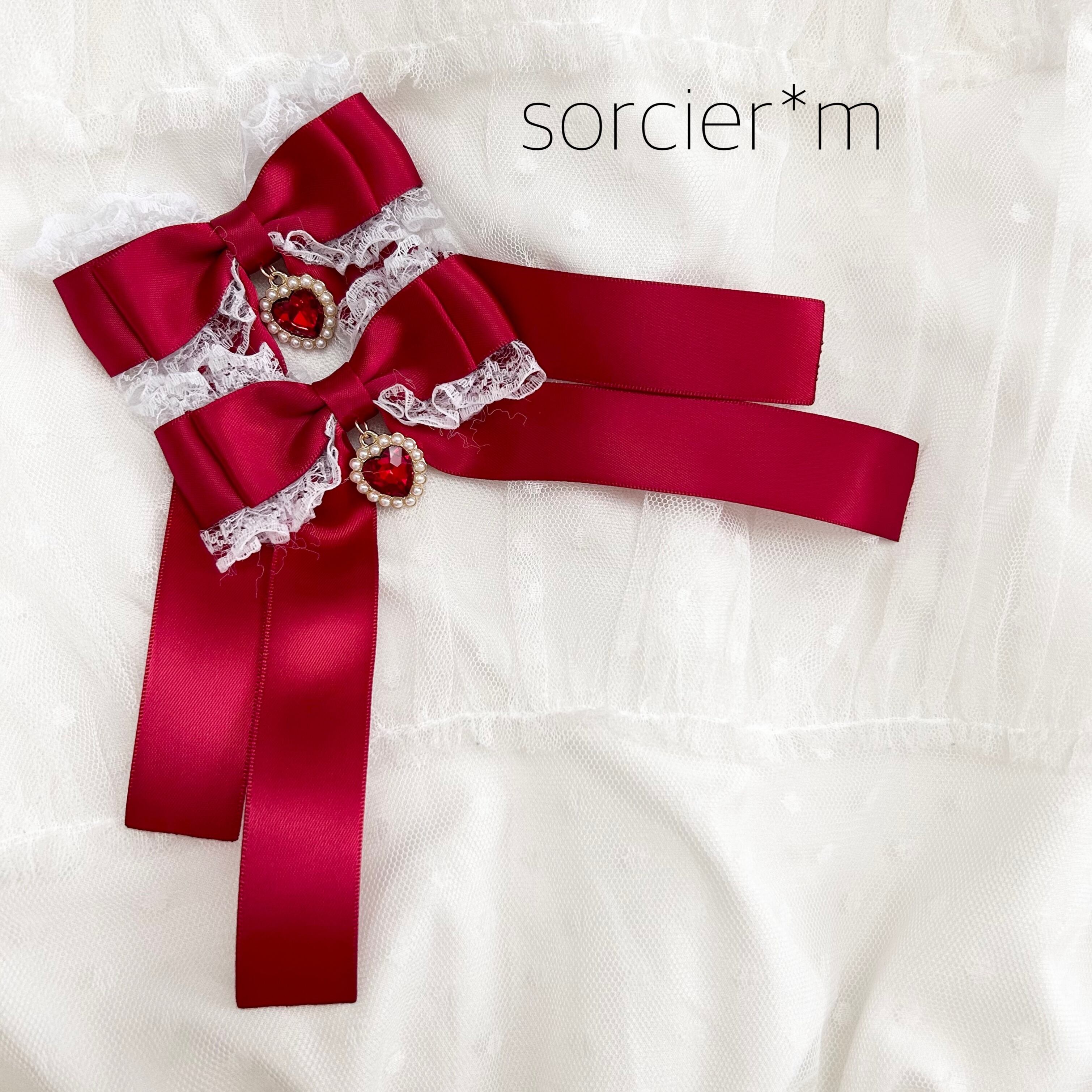 sorcier*m ソルシエム リボン ヘアクリップ ヘアピン 量産型 推し活 推し色 ヘアメ ヘアメリボン ツインテール ポニーテール プレゼント アイドル メイド 衣装 入学式 入園式 卒業式 卒園式 体育祭 ライブ sorcier*m 推しカラー 発表会 中学生 高校生 誕生日 生誕祭 sorcier*m 原宿 サブカル アイドル衣装 コンカフェ メイド喫茶 ソルシエム お給仕アイテム ソルシエム ビジュー チャーム ♡ お揃い 双子 メンカラ 参戦服 キラキラ サテンリボン sorcier*m ハート ロリィタ ロリータ 無地 レース レッド 赤 あか