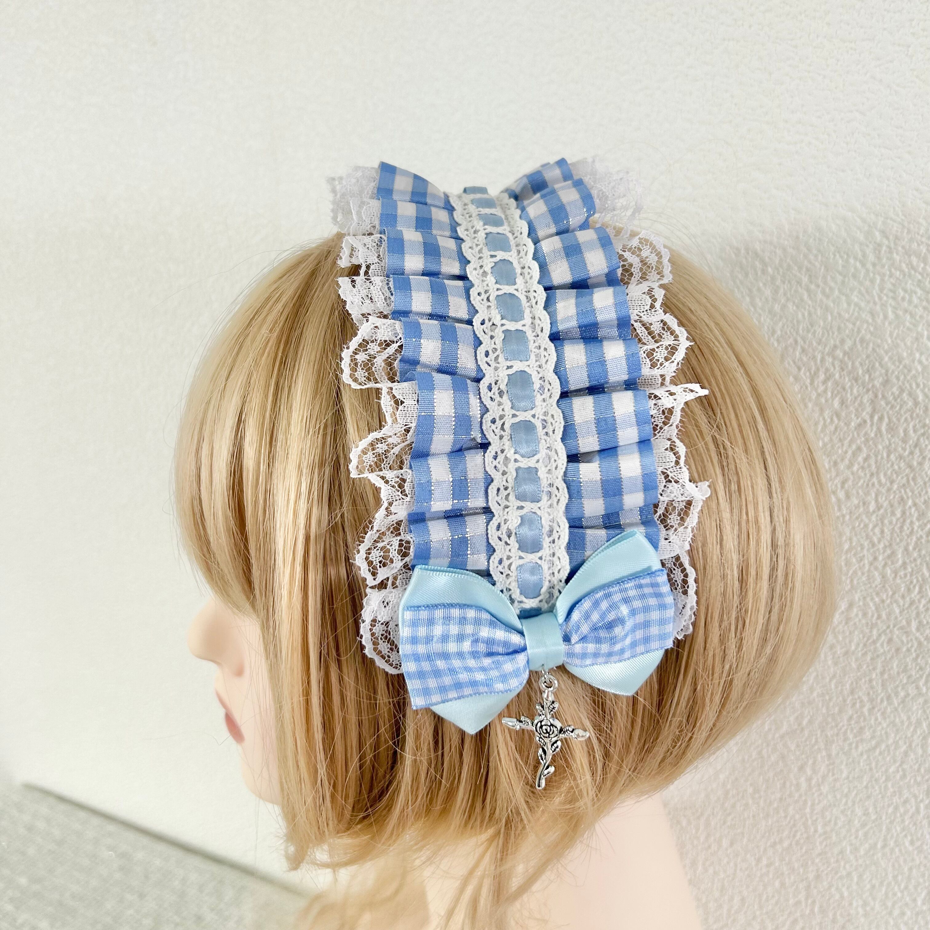 ヘアクリップ ヘッドドレス ♡ 天使界隈 水色 十字架 ゆめかわいい フリルヘッドドレス アイドル衣装