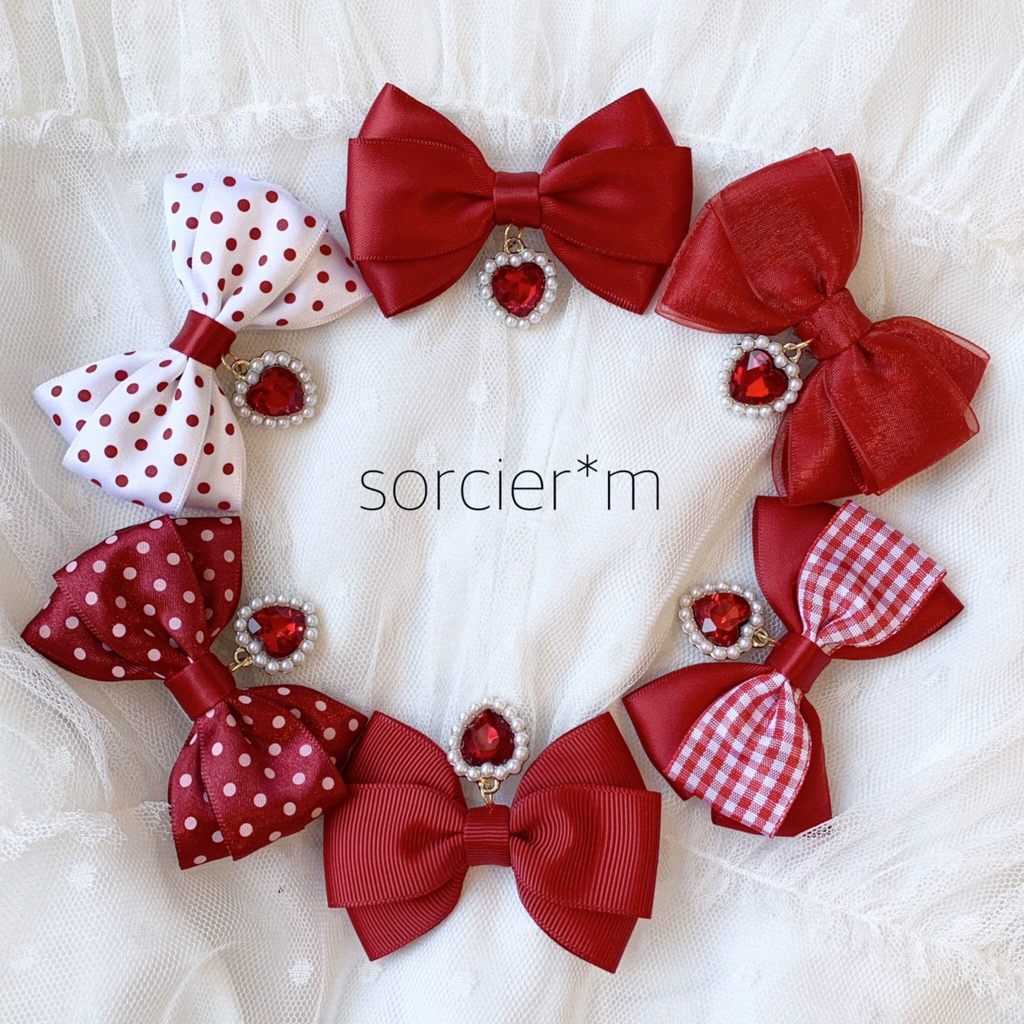 Jewel ♡ リボン ヘアクリップ 赤 レッド ギンガムチェック 量産型 地雷 あか ロリータ ロリィタ ゆめかわいい