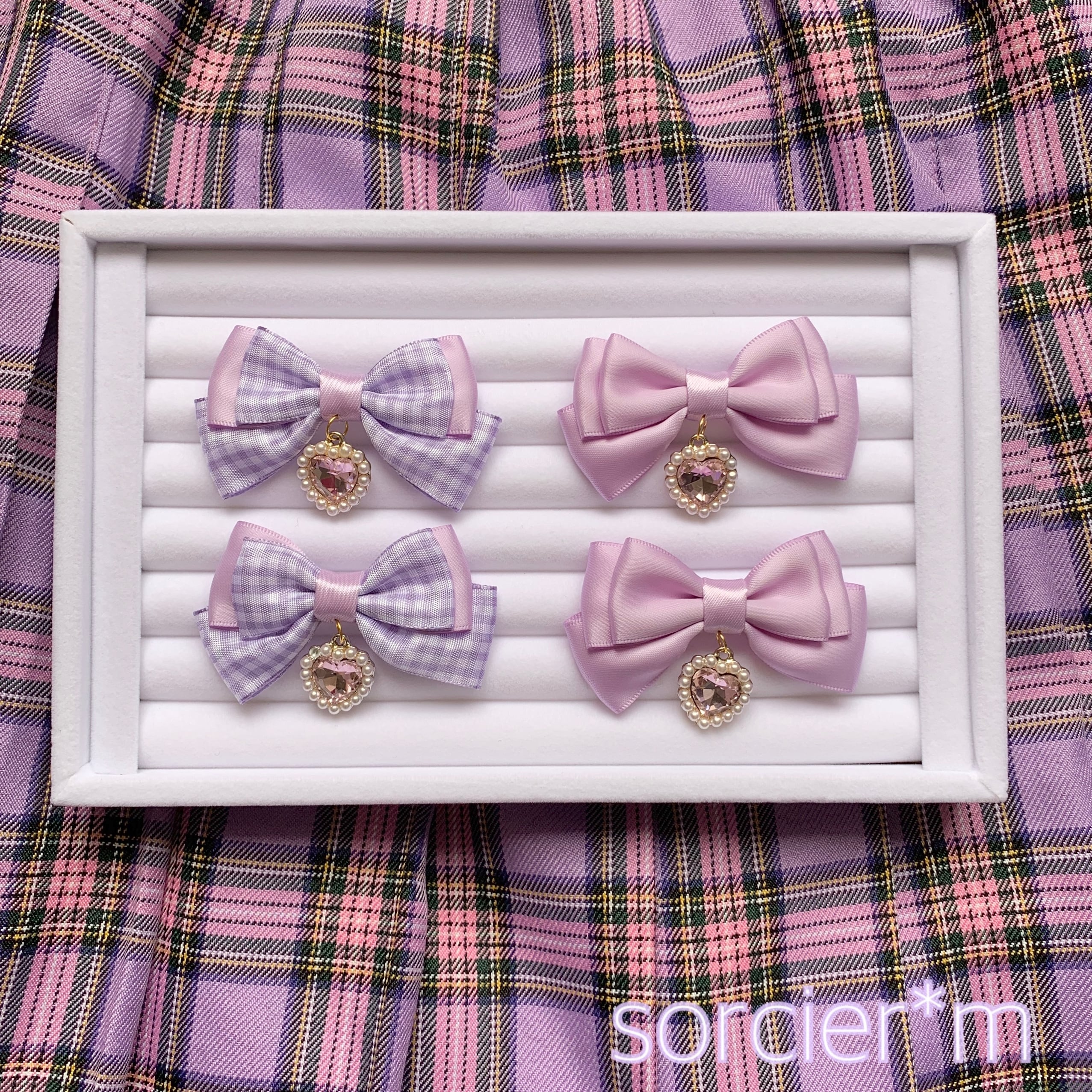 BABY Jewel ♡ 量産型 地雷 リボン ヘアクリップ 推しカラー ロリィタ ロリータ むらさき ムラサキ ラベンダー ビジュー ゆめかわいい