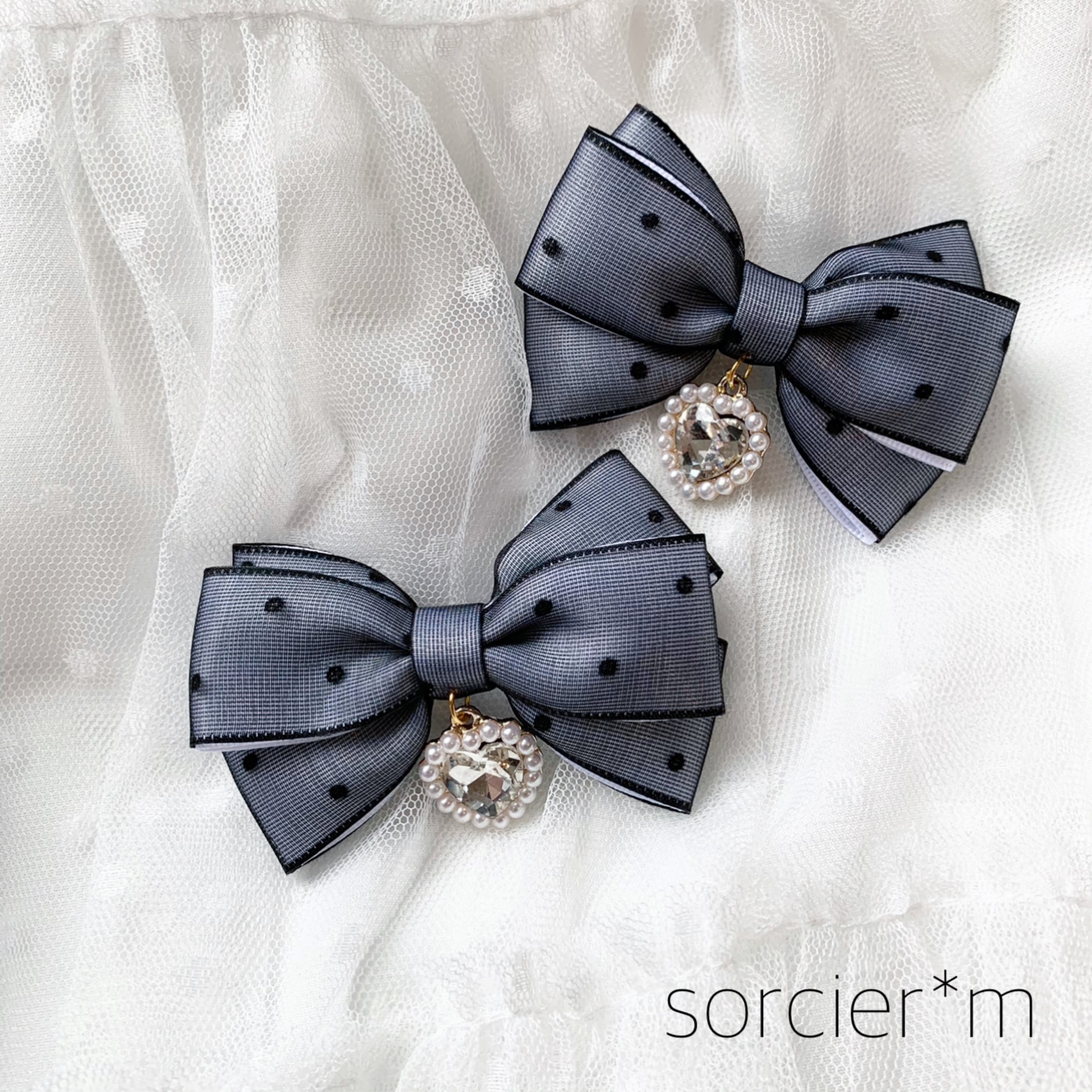 チュール Jewel ★ 量産型 リボン ヘアクリップ ツインテール クラシカル ゴスロリ ロリータ ロリィタ 赤 青 緑 白 ドット 病みかわいい 地雷