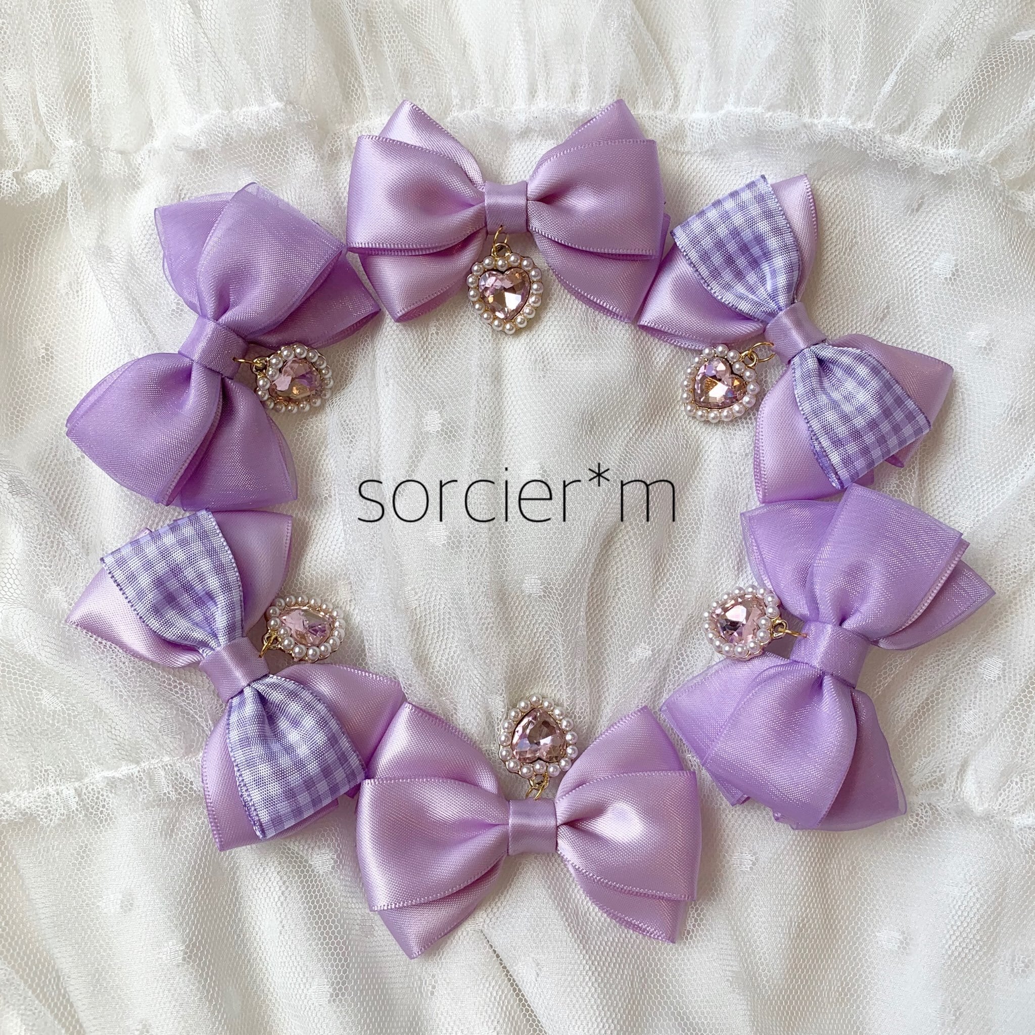 Jewel ♡ リボン ヘアクリップ ヘアピン 量産型 ラベンダー ロリィタ ロリータ ゆめかわいい 病みかわいい ゴスロリ 闇 小悪魔 シンプル ツインテール 推しカラー ムラサキ 紫 むらさき