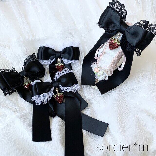 苺 いちご 地雷 ツインテール リボン ヘアクリップ 量産型 レース ゆめかわいい ロリィタ ロリータ ヘアピン リボンクリップ 推し 姫 黒 チュール フリル 闇 病みかわいい