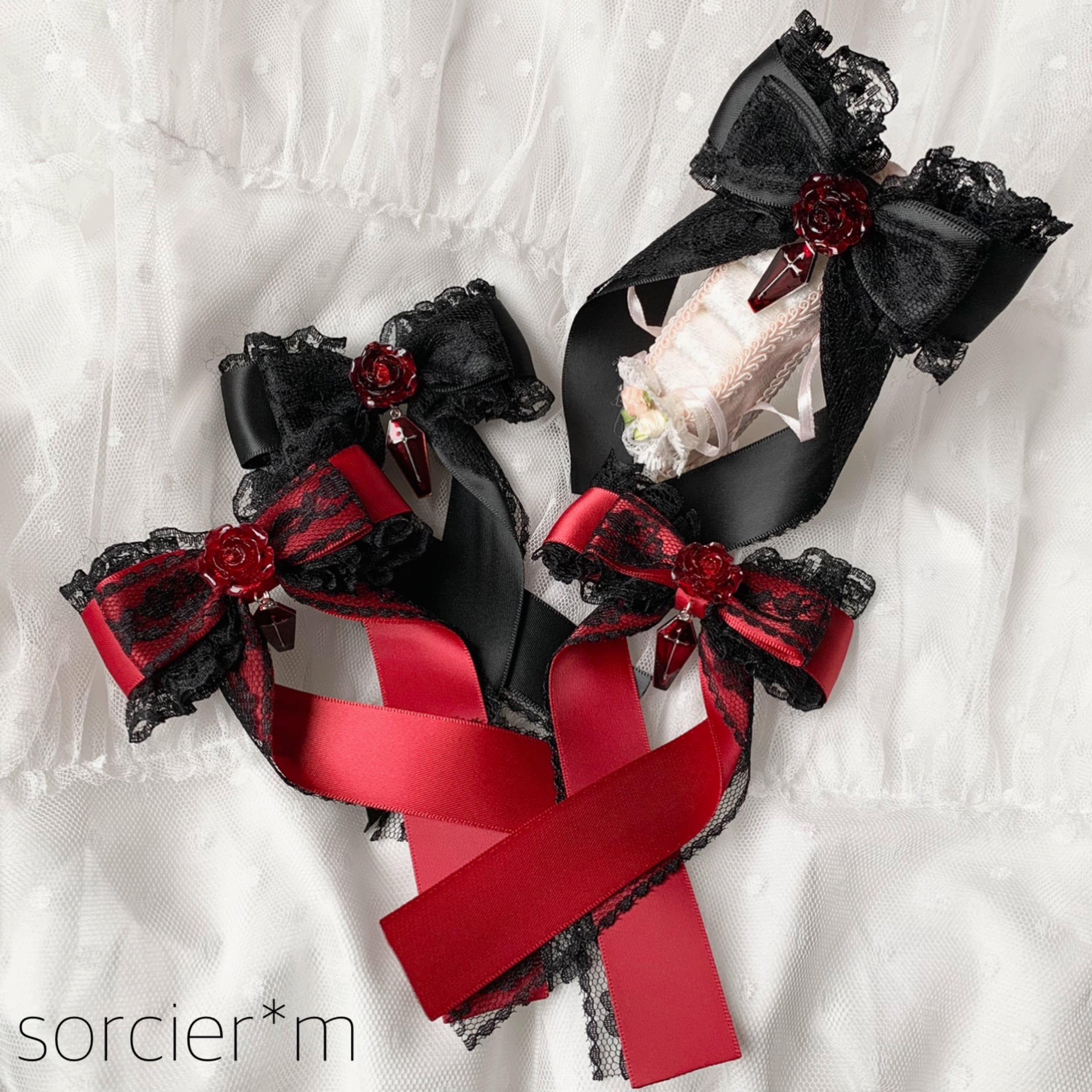 ヴァンパイア 地雷 ツインテール リボン ヘアクリップ 量産型 レース ゆめかわいい ロリィタ ロリータ ヘアピン リボンクリップ ハート パール 推し 姫 黒 薔薇 フリル 闇 病みかわいい